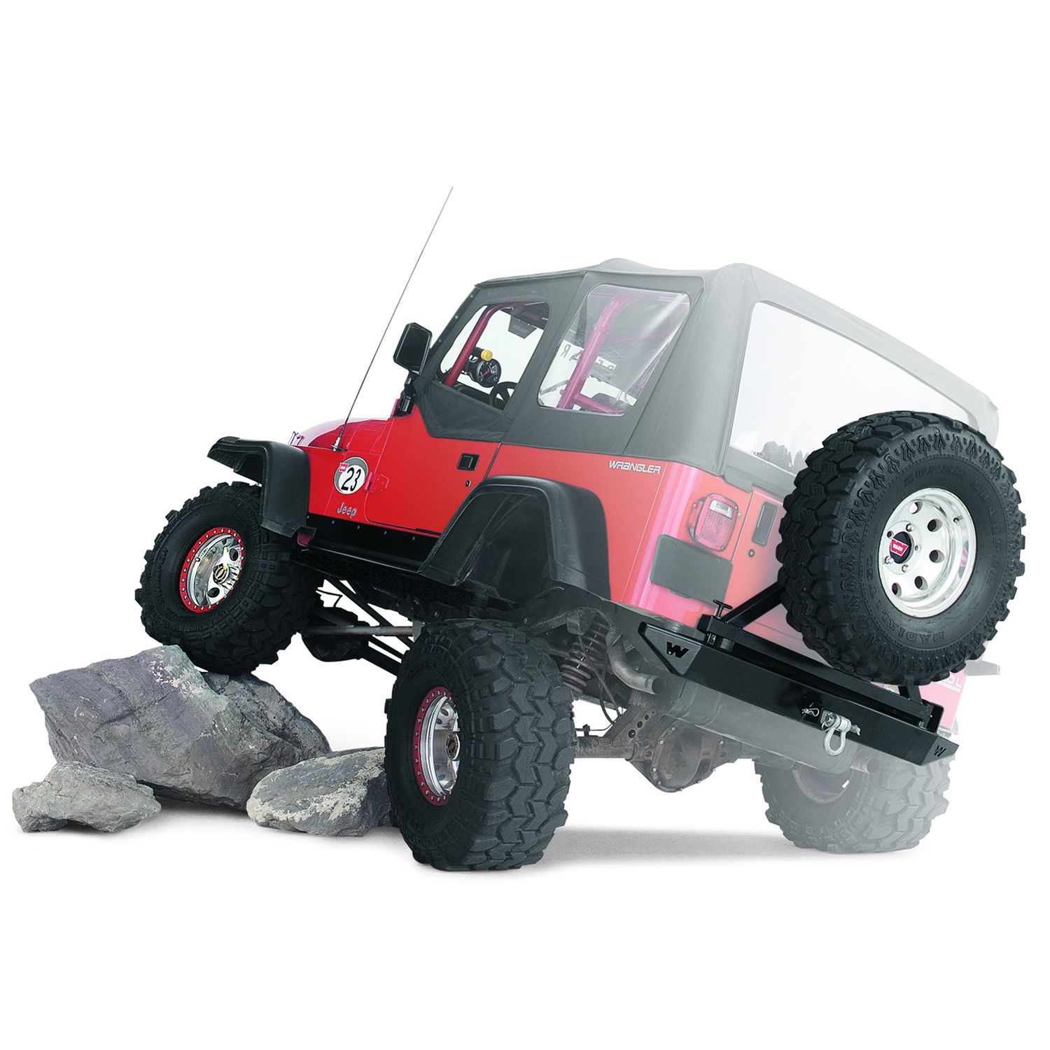Warn spare tire carriers will carrying the oversize tires that serious off roaders require
