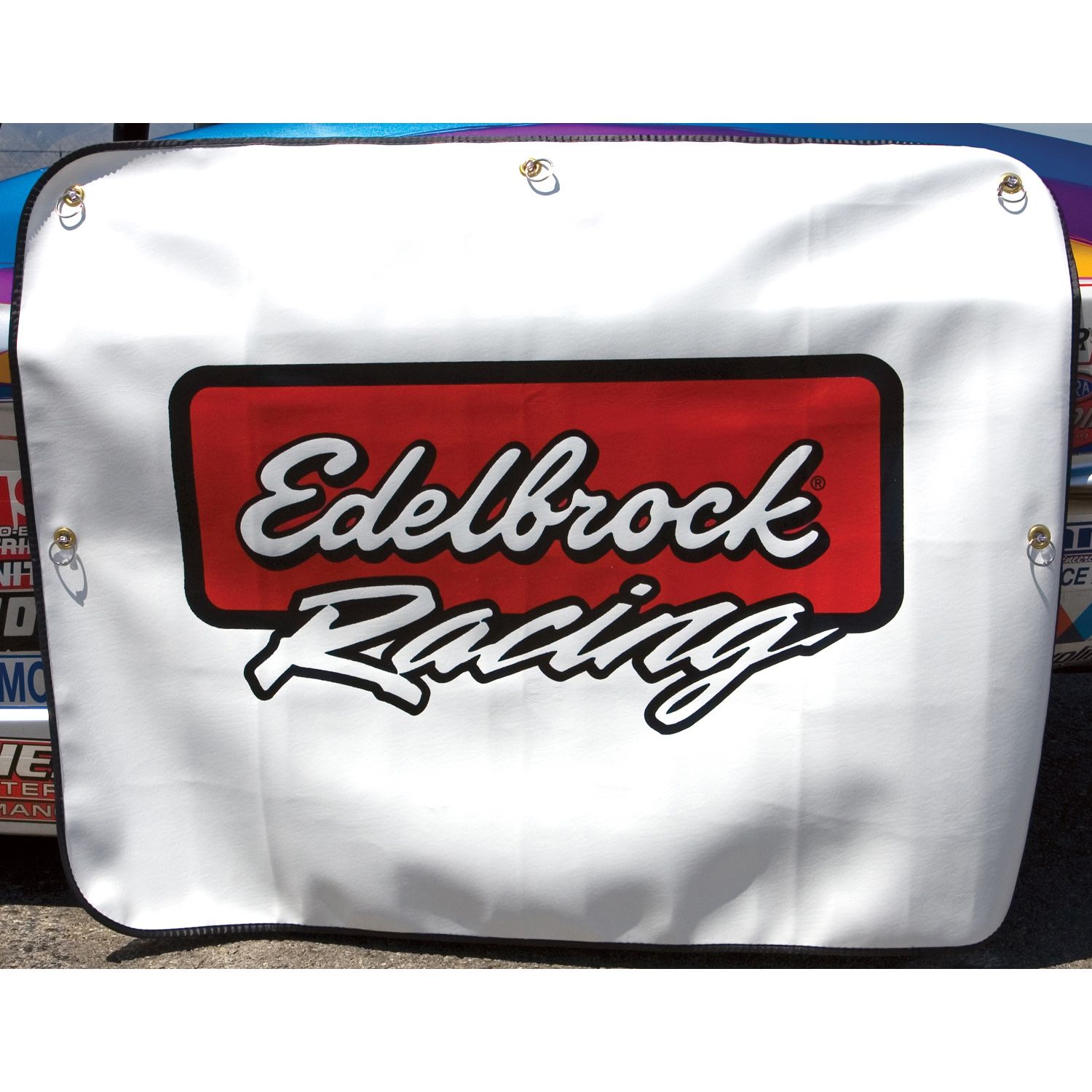 Shades tires from heat of mid-day sun. Ensures cool tires. Cooler tires provide better overall traction. Paint friendly suction cups. Easy installation and removal. Durable vinyl material. Features Edelbrock racing logo. 35 x 44 inches.