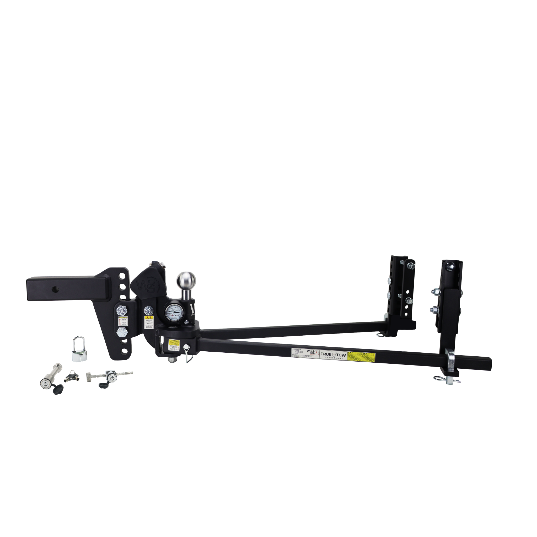 TrueTow Heavyweight Distribution Hitch – Adjustable 6" Drop w/2" Shank – Built-In Scale to Measure Tongue Weight & Distributed Tongue Weight w/4-area sway control – 18,500 lbs GTW w/Keyed-Alike Hitch Pin Lock, Coupler Lock, & Padlock
