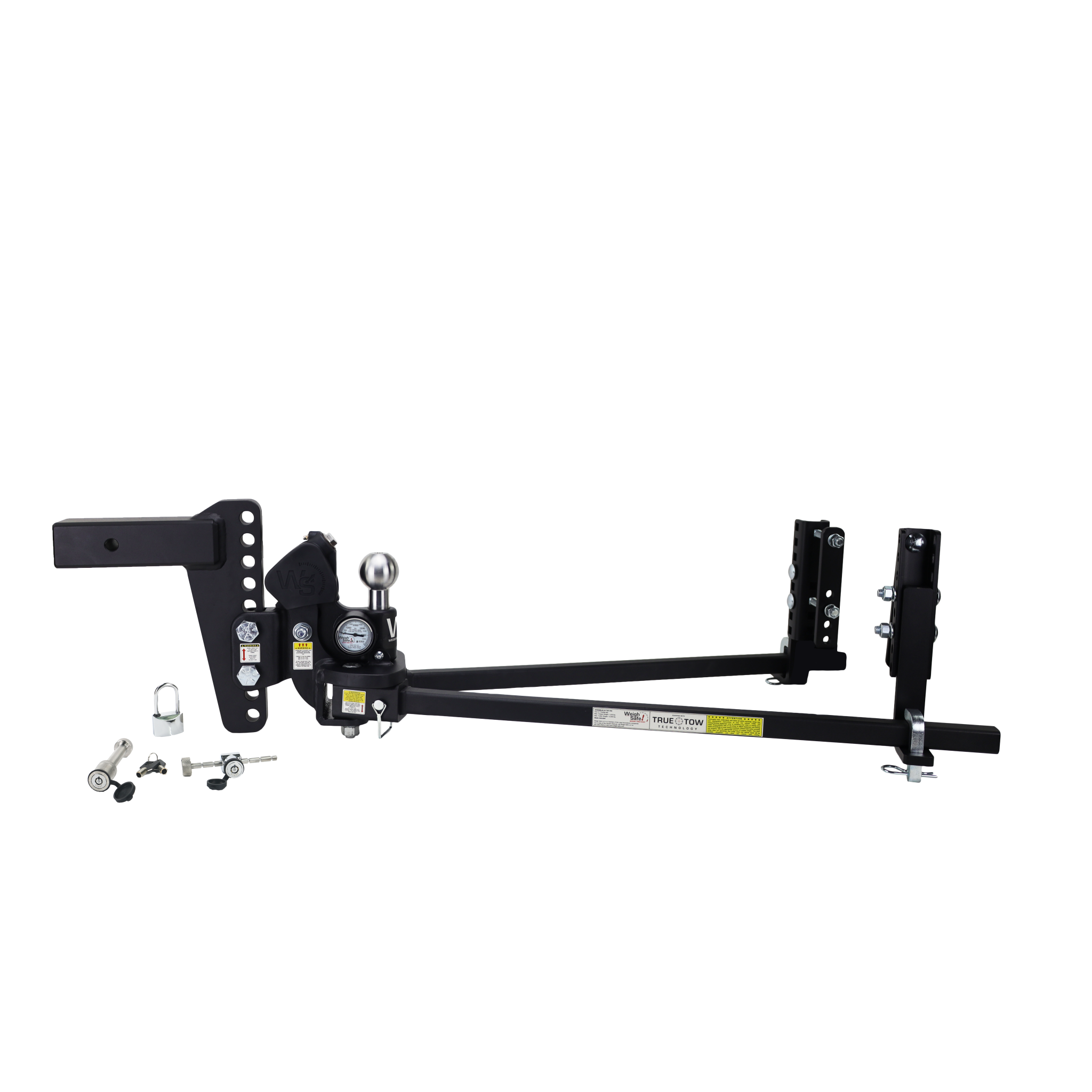 TrueTow Heavyweight Distribution Hitch – Adjustable 8" Drop w/2" Shank – Built-In Scale to Measure Tongue Weight & Distributed Tongue Weight w/4-area sway control – 18,500 lbs GTW w/Keyed-Alike Hitch Pin Lock, Coupler Latch Lock, & Padlock
