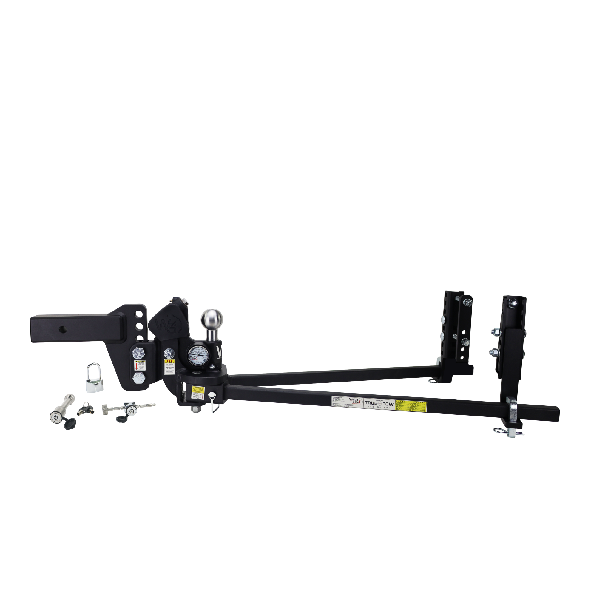 TrueTow Middleweight Distribution Hitch – Adjustable 4" Drop w/2.5" Shank – Built-In Scale to Measure Tongue Weight & Distributed Tongue Weight w/4-area sway control – 12,500 lbs GTW w/Keyed alike Hitch Pin, Coupler Lock, & Padlock