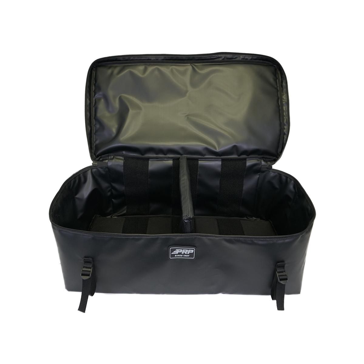 PRP’s Honda Talon Trunk Bag provides a ton of storage space for your UTV. Its perfect for holding small coolers, spare parts, jackets, water bottles, and anything you might need out on the trail. Inside the bag, we've included a removable divider with 3 different available positions. Use it to keep things organized, and separate spare-parts or coolers from other items. The bag is designed to fit perfectly into the rear bed of the Honda Talon 1000X or 1000R (2 or 4 Door), and uses 4 buckle loops to securely attach to the factory tie-down points in the bed. Made from durable Marine Grade Vinyl, with our rubberized PRP zippers to reduce noise. Sold Individually.