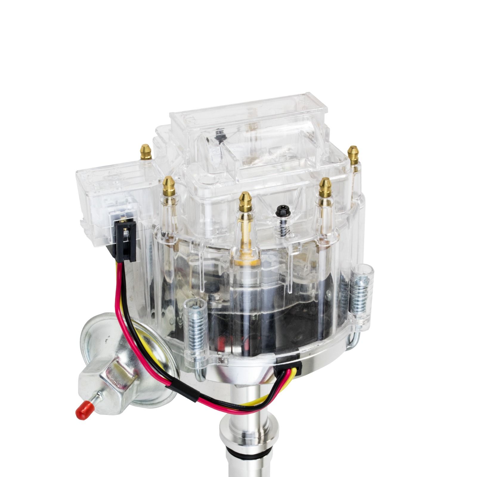 TSP HEI Distributor has everything you need, all under one cap. With a high-quality aluminum housing and hardened steel dual bushing construction, it is built to last. It features fully adjustable mechanical and vacuum advances, meaning precision is a breeze. It has a high-output module, high-spark 65,000 volt coil, solid brass terminals, and an easy one-wire hookup.