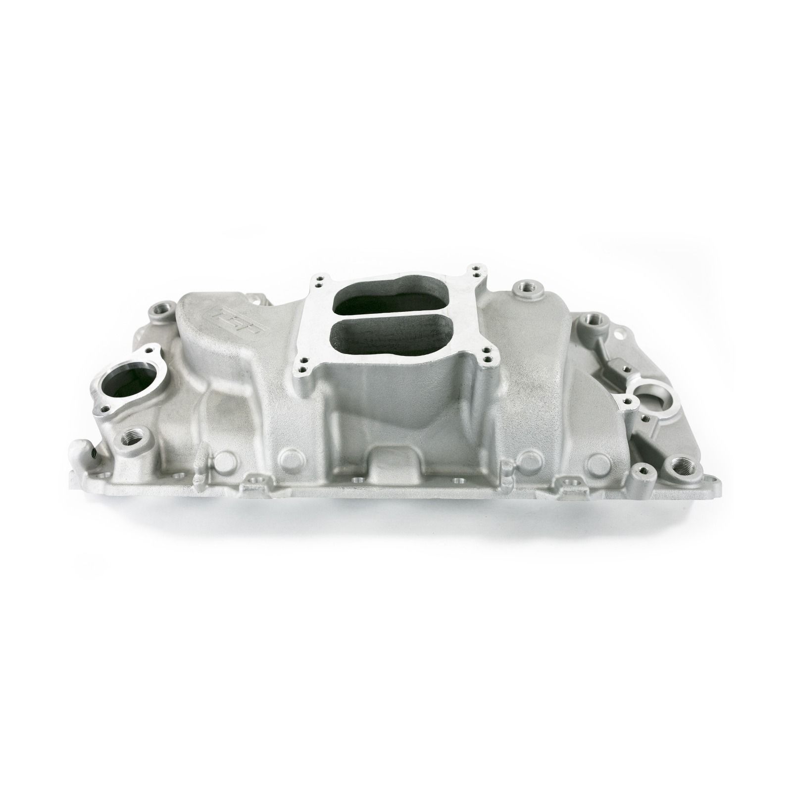 TSP's dual-plane high-performance intake manifold for the big block Chevy is ideal for street performance applications, with a design that improves throttle response, as well as power and torque over a wide rpm range – idle to 6,000. It is cast from lightweight aluminum and features a low profile for ideal hood clearance. Additional provisions include dual distributor hold-downs, 4 corner water ports, and a choke block-off kit. Set up for spread bore carbs, this manifold comes with an adapter plate and gasket for use with square bore types.