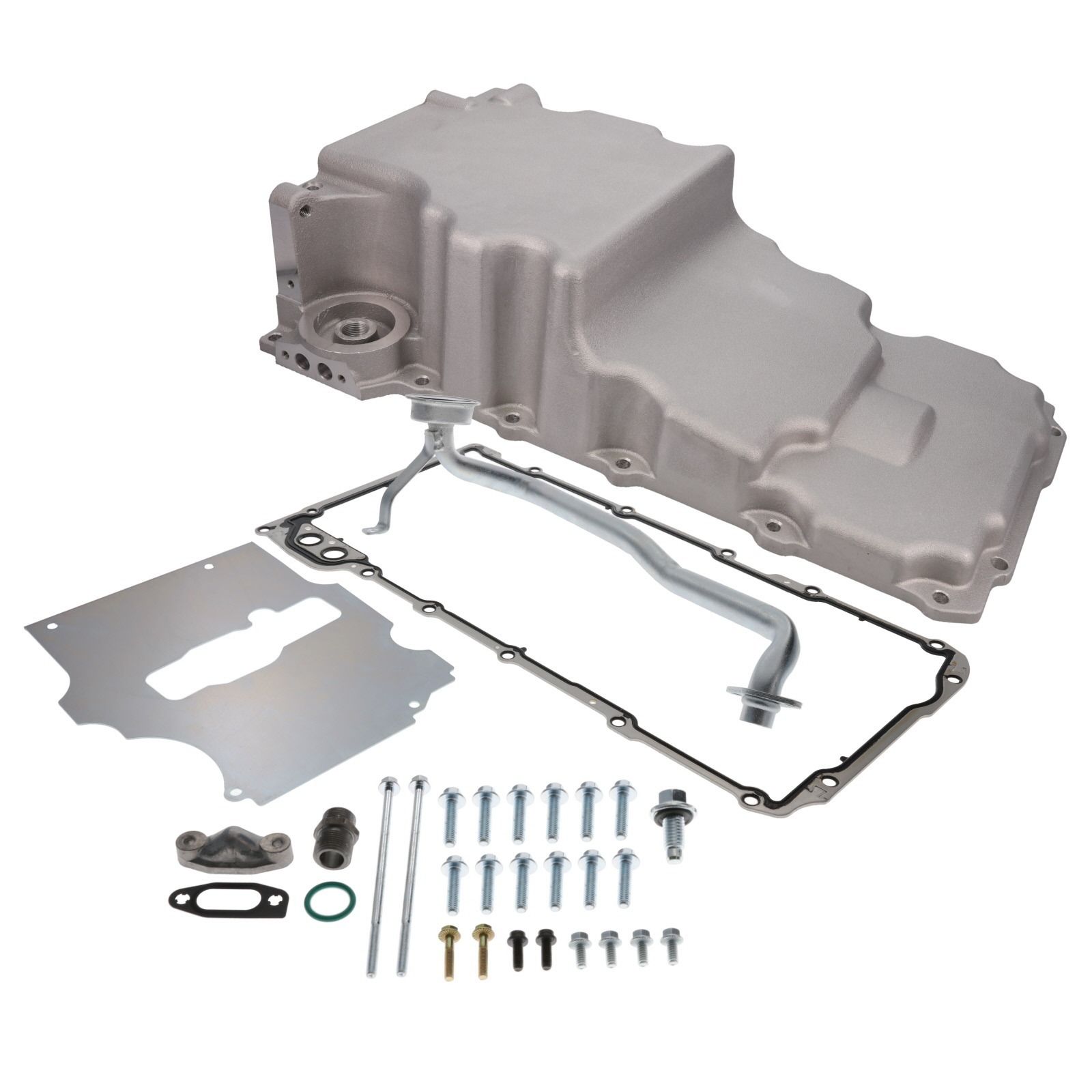 LS engines are among the most popular for swaps for their low expense and great power potential. Unfortunately, stock LS oil pans can't always fit where you want them to. That's where TSP's low-profile, retro fit oil pan comes in. Composed of lightweight cast aluminum, it is designed to allow for increased clearance to the ground and chassis. It will fit many GM rear-wheel drive applications originally equipped with a small or big block Chevy engine and factory rear sump pan. Meticulously designed, it will mount perfectly to any wet-sump LS engine and take the stock oil filter.