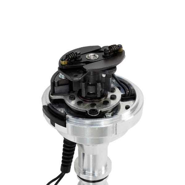 TSP Pro Series Pro Billet Distributor is for the racer who needs added spark and precision for their high performance power plant. It features a high quality, fully adjustable mechanical advance and an accurate magnetic pickup trigger. The CNC-machined aluminum body and hardened steel shaft, guided by a sealed ball bearing on top and a sintered steel bushing on the bottom, ensure stability up to 10,000 RPM. The dielectric cap features bolt-down and twist-lock capabilities. It has solid brass terminals and comes with a color-matched wire retainer.
