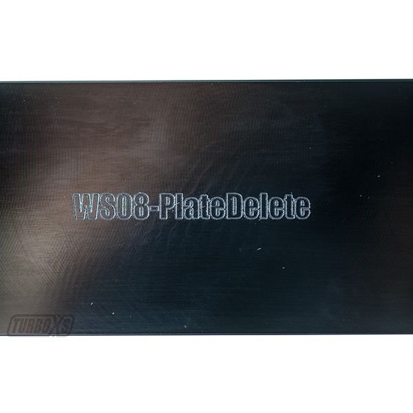 Billet Aluminum License Plate Delete; 2008-14 Subaru WRX/STi; Black; Machined "WRX" Logo.