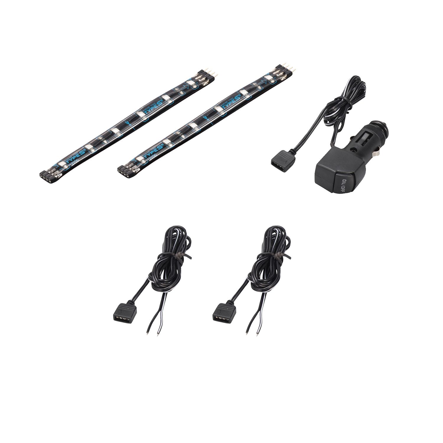 TYPE S vehicle lighting kits come with bright, flexible, adhesive-backed LED strips that are water-resistant. Designed with first-to-market, 4-pin Plug & Glow connection points, this TYPE S LED kit can extend up to 12 feet. Conveniently power the LED strips with the included the 12V power adapter, or 12V hardwire options to the fuse box. Extension accessories and fuse adapter not included.