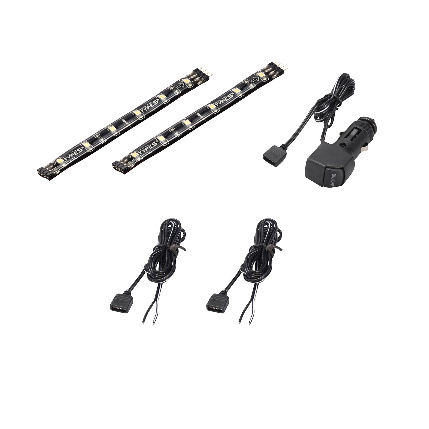 TYPE S vehicle lighting kits come with bright, flexible, adhesive-backed LED strips that are water-resistant. Designed with first-to-market, 4-pin Plug & Glow connection points, this TYPE S LED kit can extend up to 12 feet. Conveniently power the LED strips with the included the 12V power adapter, or 12V hardwire options to the fuse box. Extension accessories and fuse adapter not included.