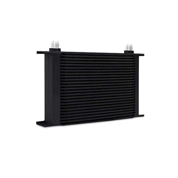 Every street or track vehicle demands a reliable and efficient cooling system.High oil temperatures accelerate oil degradation and can result in increased engine wear and potential failure of internal components.The Mishimoto universal 25-row oil cooler is the perfect upgrade for extending engine life and ensuring the proper lubrication of engine components while maintaining ideal oil temperatures.This oil cooler is nearly 2 inches thick and has an overall oil capacity of .44 qt.The Mishimoto universal 25-row oil cooler is available in silver or black and includes the Mishimoto lifetime warranty.