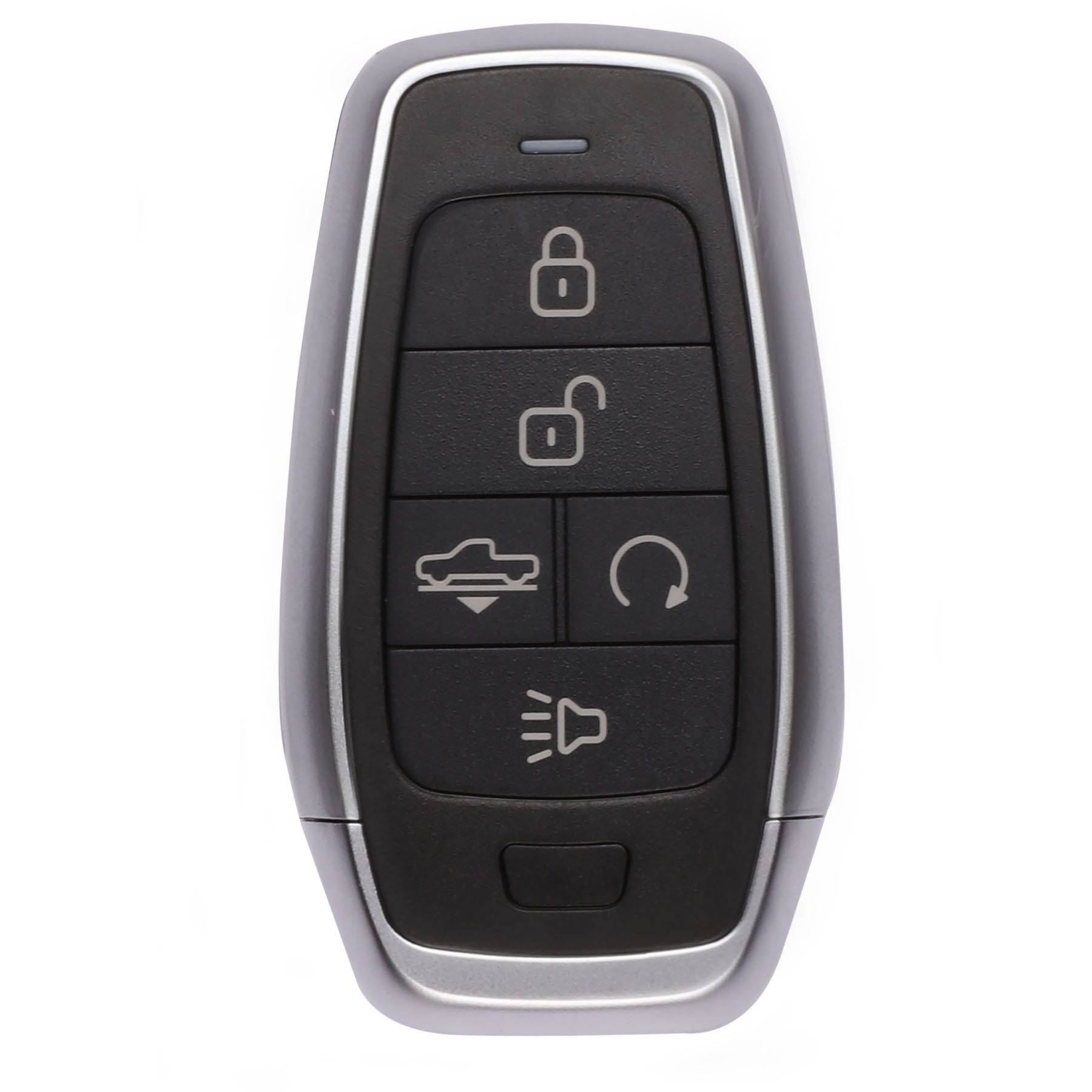Autel universal programmable 5-button IKEY. Lock, Unlock, Air Suspension, Remote Start, Panic buttons. Use the Autel MaxiIM KM100 to program IKEY to replace an expansive list of OE Smart Keys, including those used by Hyundai, Nissan, Chrysler, Honda, General Motors, and select BMW, Audi, Volkswagen, and Volvo vehicles. Meets or exceeds industry and regulatory standards. Compatible with vehicle systems using 315/415 MHz and 868/915 MHz. Capable of Ultra-Long Range (40 meters/130 feet) frequency transmission. Battery (CR2032) and Emergency Blade not included. One-year limited warranty.
