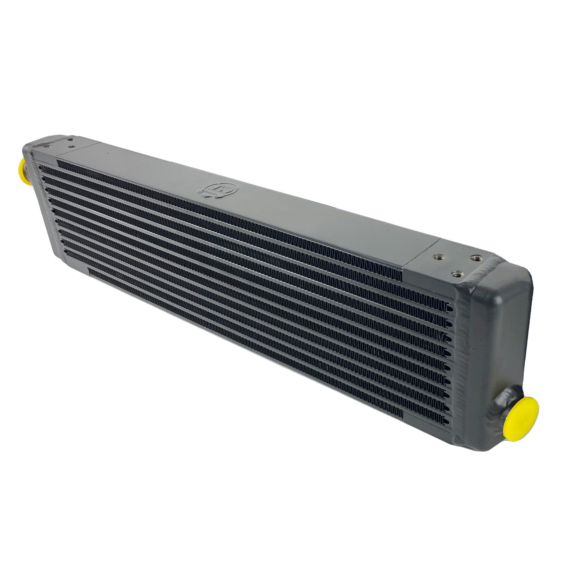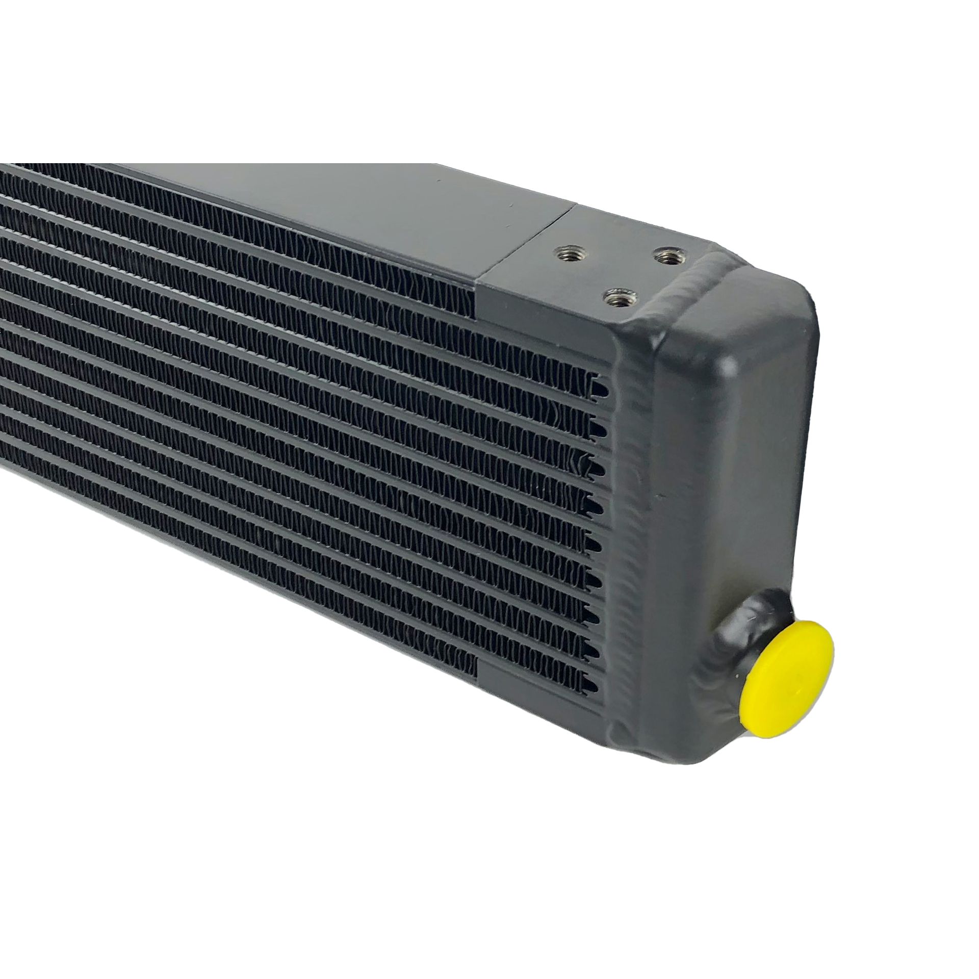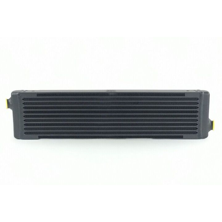 The unique design of CSF's oil cooler line has distinct advantages over conventional style oil coolers (plate-type/stacked oil coolers). The oil coolers can be placed in tighter spaces or different areas of the vehicle that don't have much vertical surface area. Longer rectangular sizes can also help with avoiding the stacking of too many coolers which may cause airflow issues to other components in the cooling system. Inlet/outlet port placement is much easier to route oil lines. Typical oil cooler lines have to be routed from different/opposite ends of the cooler often facing up or down. Usually one line has to run across from one side of the cooler to the other to then be routed together to the feed/return connection of the oil system. The CSF oil coolers are much more robust, durable, and can withstand a higher peak burst rate. This allows the cooler to be mounted in areas that might get high debris (front fascia, diff cooler, side vents, etc…). The CSF oil cooler is designed to withstand a tremendous amount of vibration and debris.