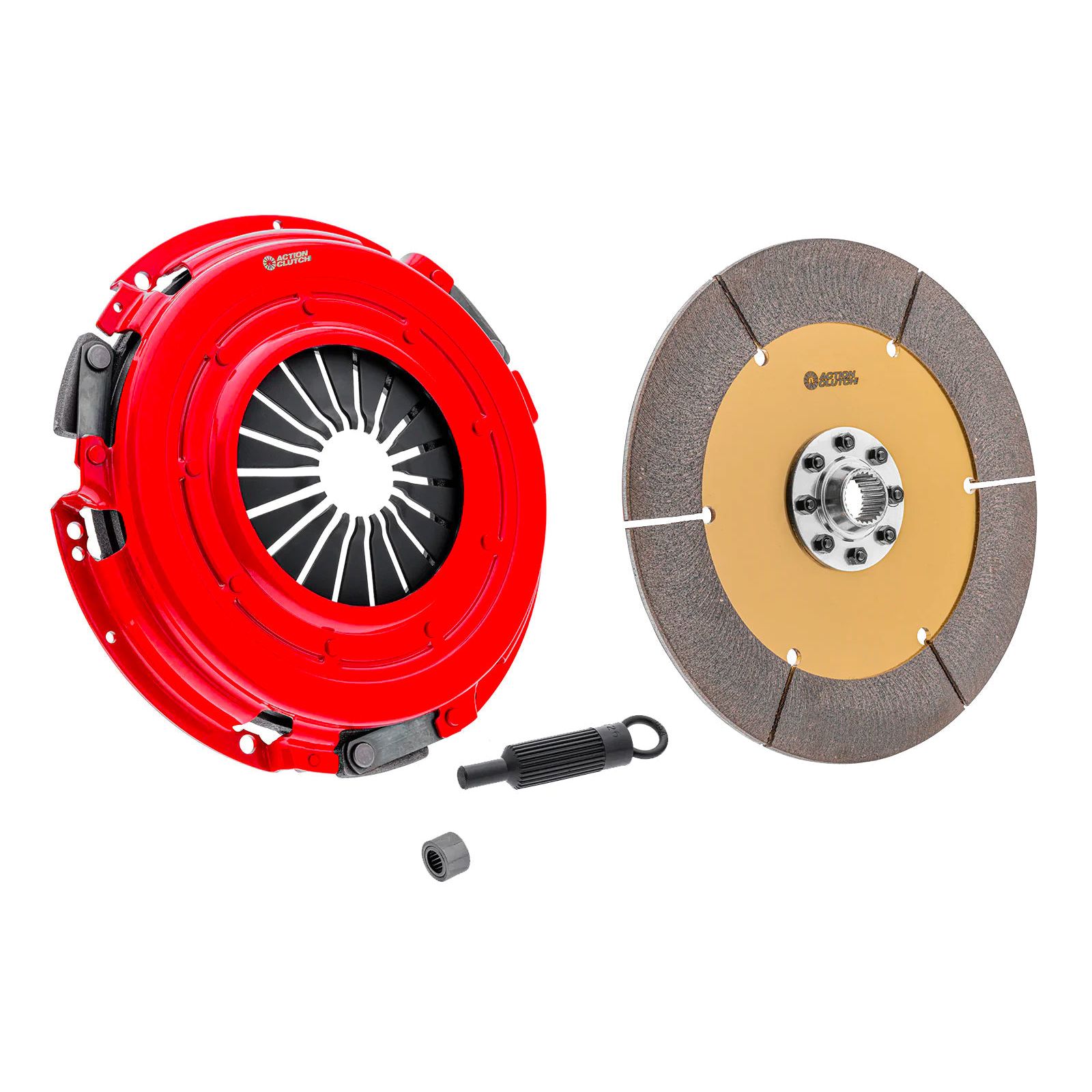 The Action Clutch Ironman Unsprung kit is engineered specifically for dedicated high powered race vehicles, delivering durability and reliable performance. It features our American Sintered Iron friction material with our Dual clamp load heavy-duty pressure plate that ensures maximum torque holding capacity. The clutch engagement is aggressive with an on/off feel, without introducing clutch chatter. Some light engagement noise and gear rattle may be experienced during operation due to the nature of the product. No compromises are made in this kit, ensuring optimal performance even under extreme conditions. This kit is not intended for street use and should only be used in race applications. At Action Clutch, every kit is quality checked by one of our experienced engineers (with over 60 years of collective experience) and signed off as safe before being released as a finished product. This gives you peace of mind knowing that your Action Clutch will perform consistently every time. NOTE: Purchasing the wrong type of clutch kit for your specific engine power output can result in premature clutch failure, damage to the transmission and void warranty eligibility. If you're unsure what kit is right for you, contact Action Clutch direct. 250% INCREASED HOLDING CAPACITY OVER FACTORY KIT SPECIFICALLY ENGINEERED FOR TRACK USE APPLICATIONS ONLY