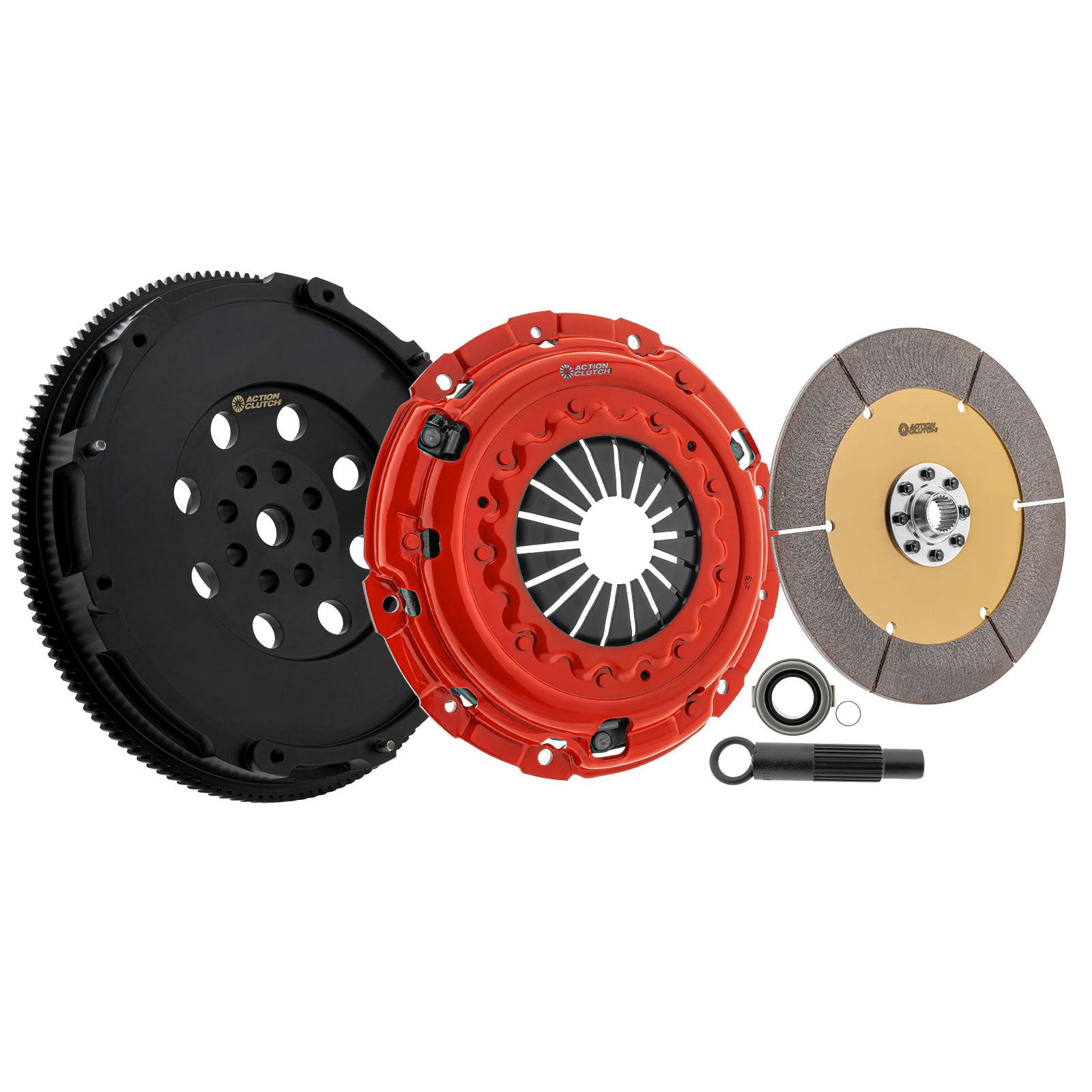 The Action Clutch Ironman Unsprung kit is engineered specifically for dedicated high powered race vehicles, delivering durability and reliable performance. It features our American Sintered Iron friction material with our Dual clamp load heavy-duty pressure plate that ensures maximum torque holding capacity. The clutch engagement is aggressive with an on/off feel, without introducing clutch chatter. Some light engagement noise and gear rattle may be experienced during operation due to the nature of the product. No compromises are made in this kit, ensuring optimal performance even under extreme conditions. This kit is not intended for street use and should only be used in race applications. At Action Clutch, every kit is quality checked by one of our experienced engineers (with over 60 years of collective experience) and signed off as safe before being released as a finished product. This gives you peace of mind knowing that your Action Clutch will perform consistently every time. NOTE: Purchasing the wrong type of clutch kit for your specific engine power output can result in premature clutch failure, damage to the transmission and void warranty eligibility. If you're unsure what kit is right for you, contact Action Clutch direct. 250% INCREASED HOLDING CAPACITY OVER FACTORY KIT SPECIFICALLY ENGINEERED FOR TRACK USE APPLICATIONS ONLY