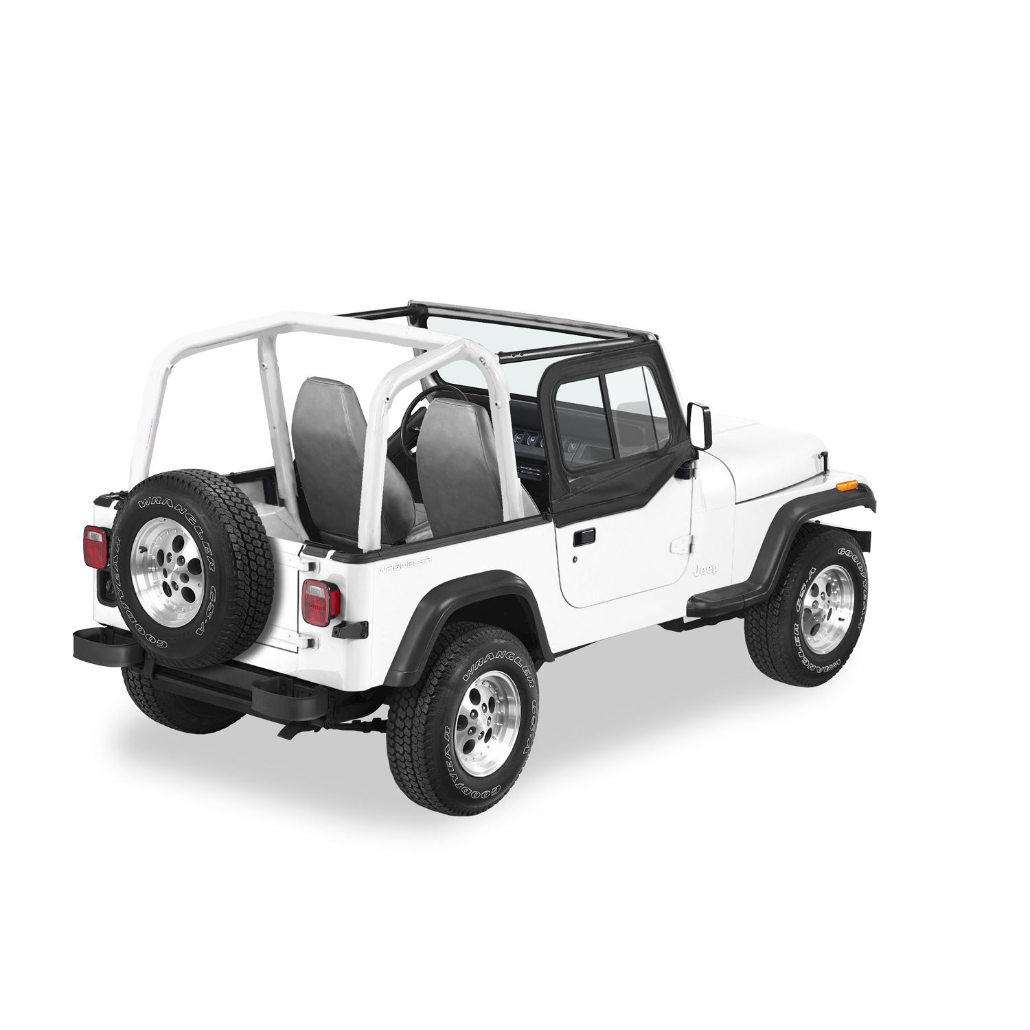It's cold outside, you're at the toll booth ready to throw change into the hopper and the struggle begins to unzip that vinyl window. And then you have to try and zip it up while pulling out or risk the wrath of horn-honkers behind you. Stop struggling and start using Bestop Upper Door Sliders. You can just slide a glass panel open, do your thing and then just as quickly, slide it shut. This is the perfect accessory for 1988-1995 Wrangler soft top owners with fabric upper doors. This is one of our best-selling cold weather products.