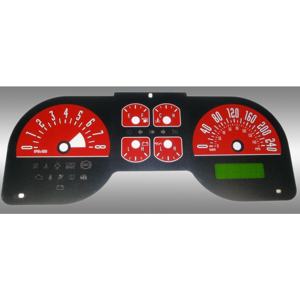 US Speedo Pro Color Edition Custom Gauge Face for 2005 to 2009 Ford Mustang GT Gas KMH 5-Red.