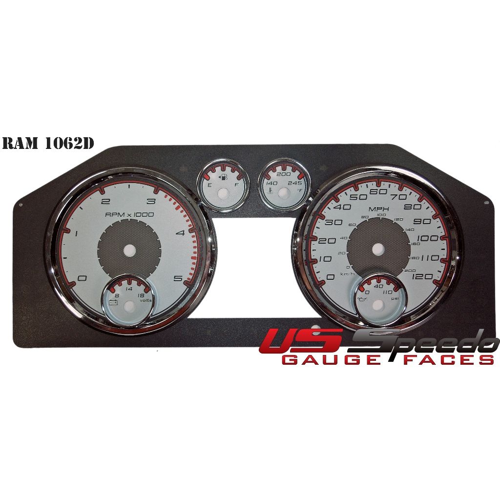 US Speedo Pro Color Edition Custom Gauge Face for 2009 to 2012 Dodge Ram Diesel Diesel MPH 2-Silver.