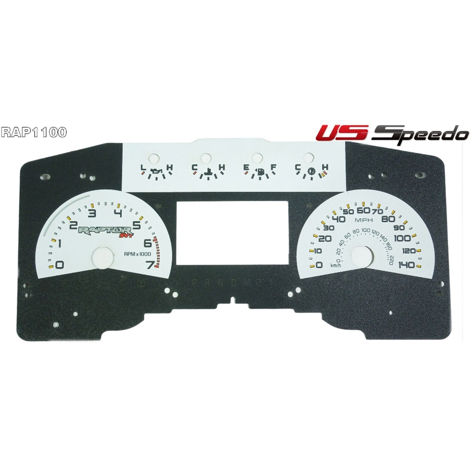 US Speedo Pro Color Edition Custom Gauge Face for 2011 to 2014 Ford F150 Raptor Gas MPH 0-White.