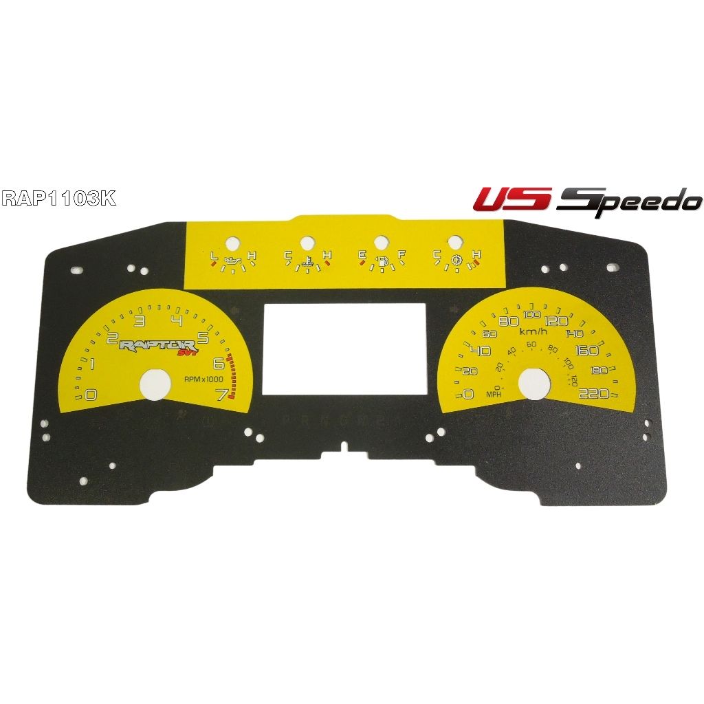 US Speedo Pro Color Edition Custom Gauge Face for 2011 to 2014 Ford F150 Raptor Gas KMH 3-Yellow.