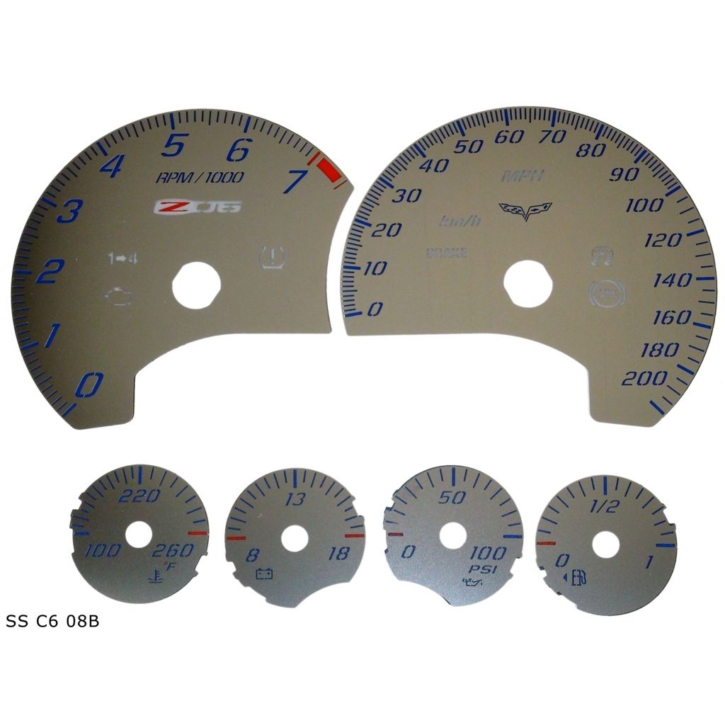US Speedo Stainless Edition Custom Gauge Face for 2005 to 2013 Chevrolet Corvette C6 Z06 Gas MPH B-Blue.