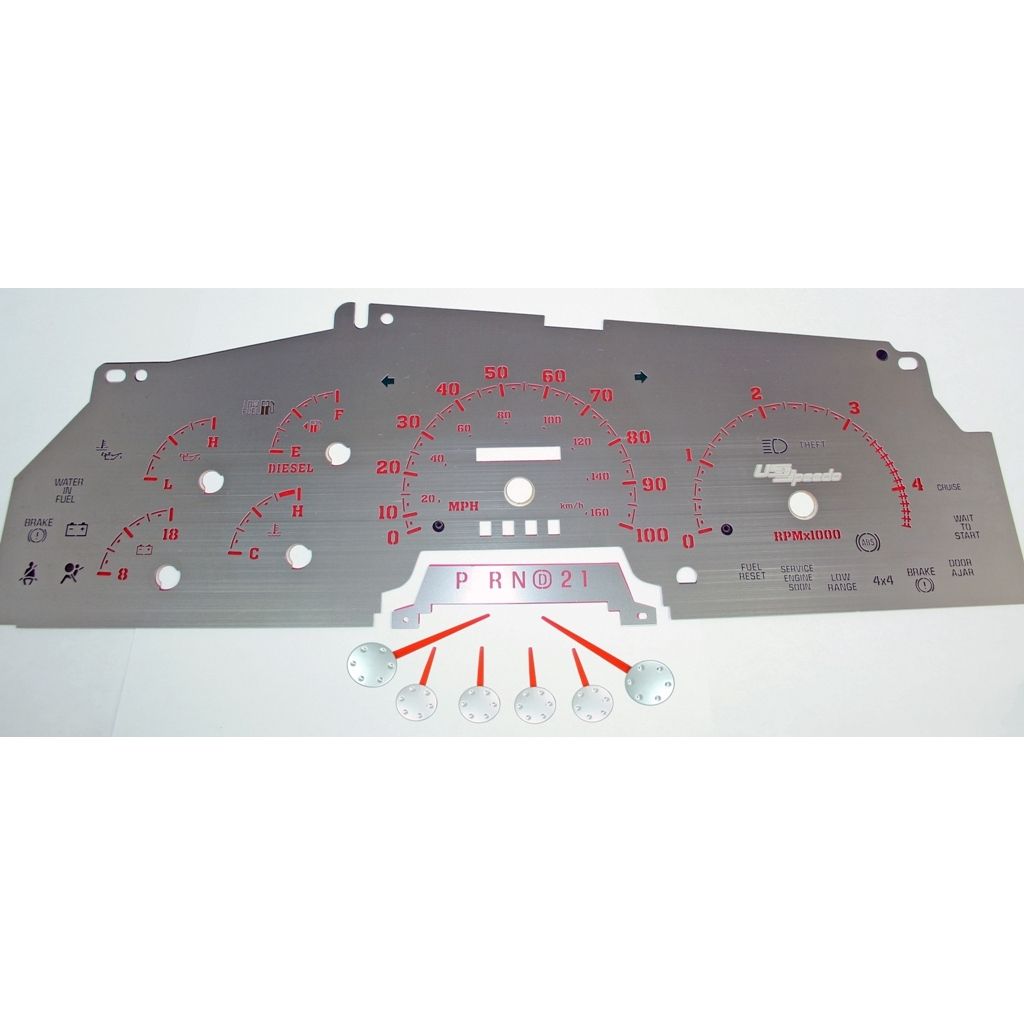 US Speedo Stainless Edition Custom Gauge Face for 1999 to 2003 Ford F250/F350 Diesel Diesel MPH R-Red.