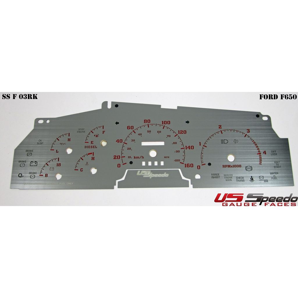 US Speedo Stainless Edition Custom Gauge Face for 2005 to 2009 Ford F650 Diesel KMH R-Red.