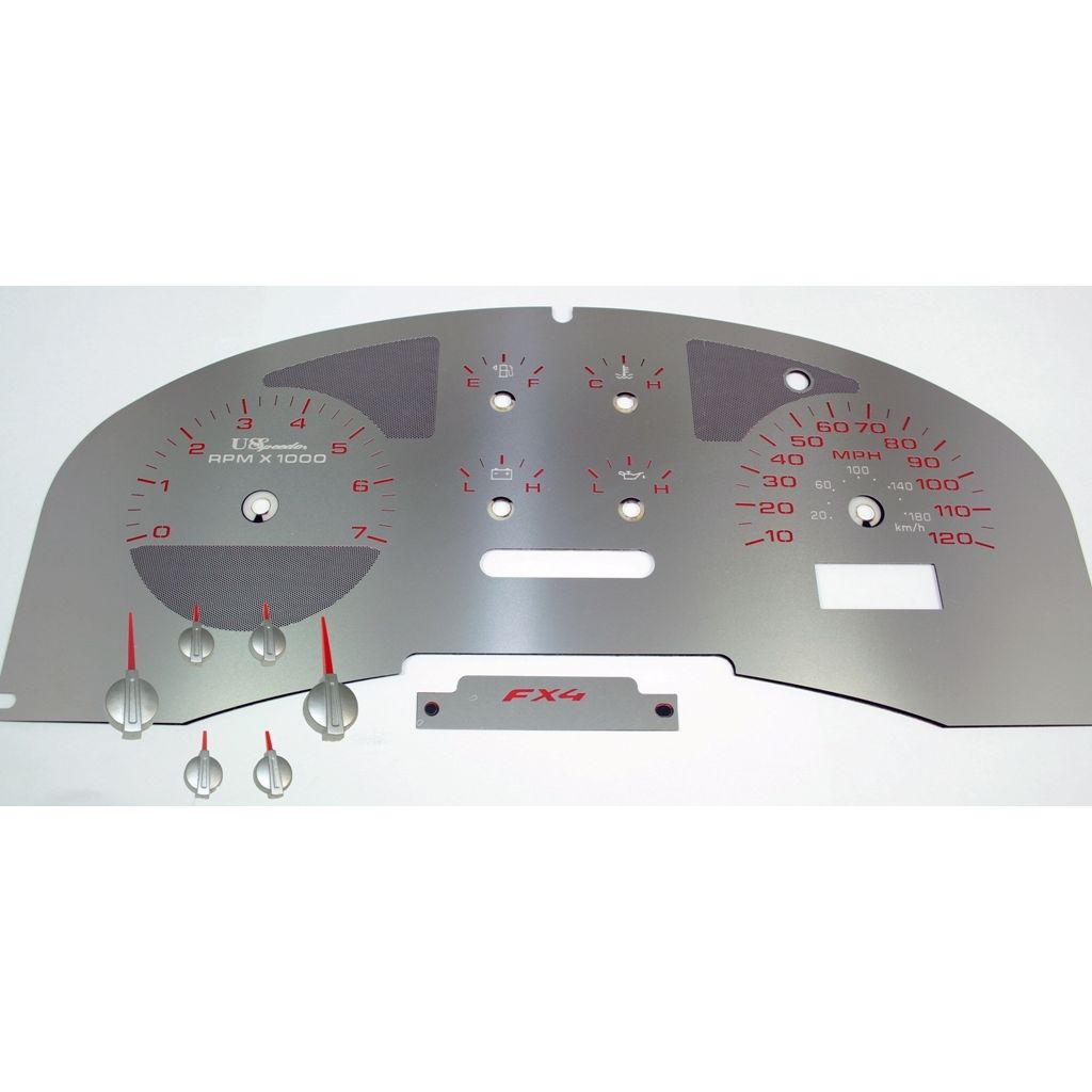 US Speedo Stainless Edition Custom Gauge Face for 2004 to 2006 Ford F150 FX4 Gas MPH R-Red.