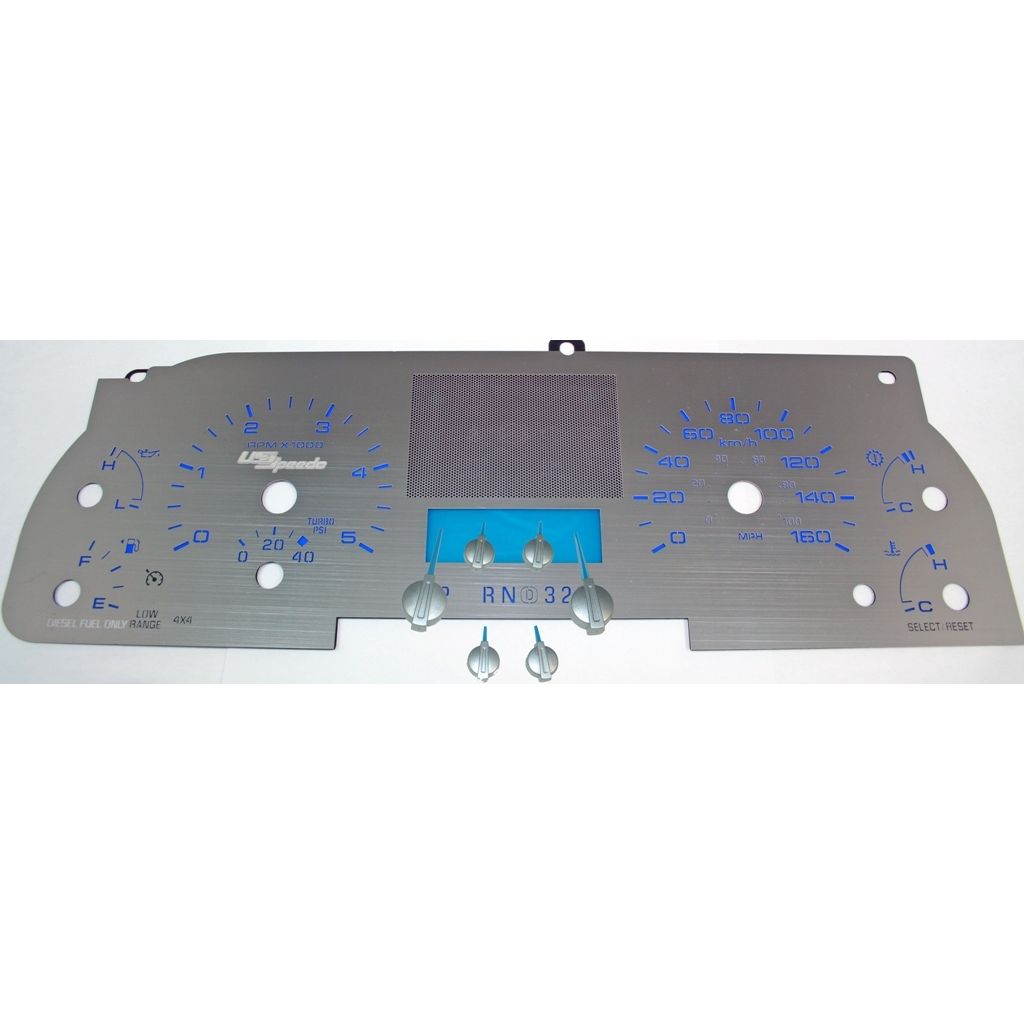 US Speedo Stainless Edition Custom Gauge Face for 2005 to 2007 Ford F250/F350 Diesel XLT/FX4 Diesel KMH B-Blue.
