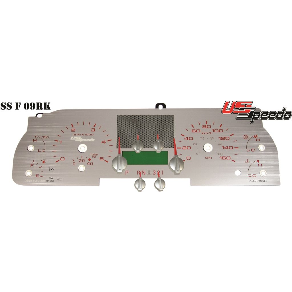 US Speedo Stainless Edition Custom Gauge Face for 2005 to 2007 Ford F250/F350 Diesel XLT/FX4 Diesel KMH R-Red.