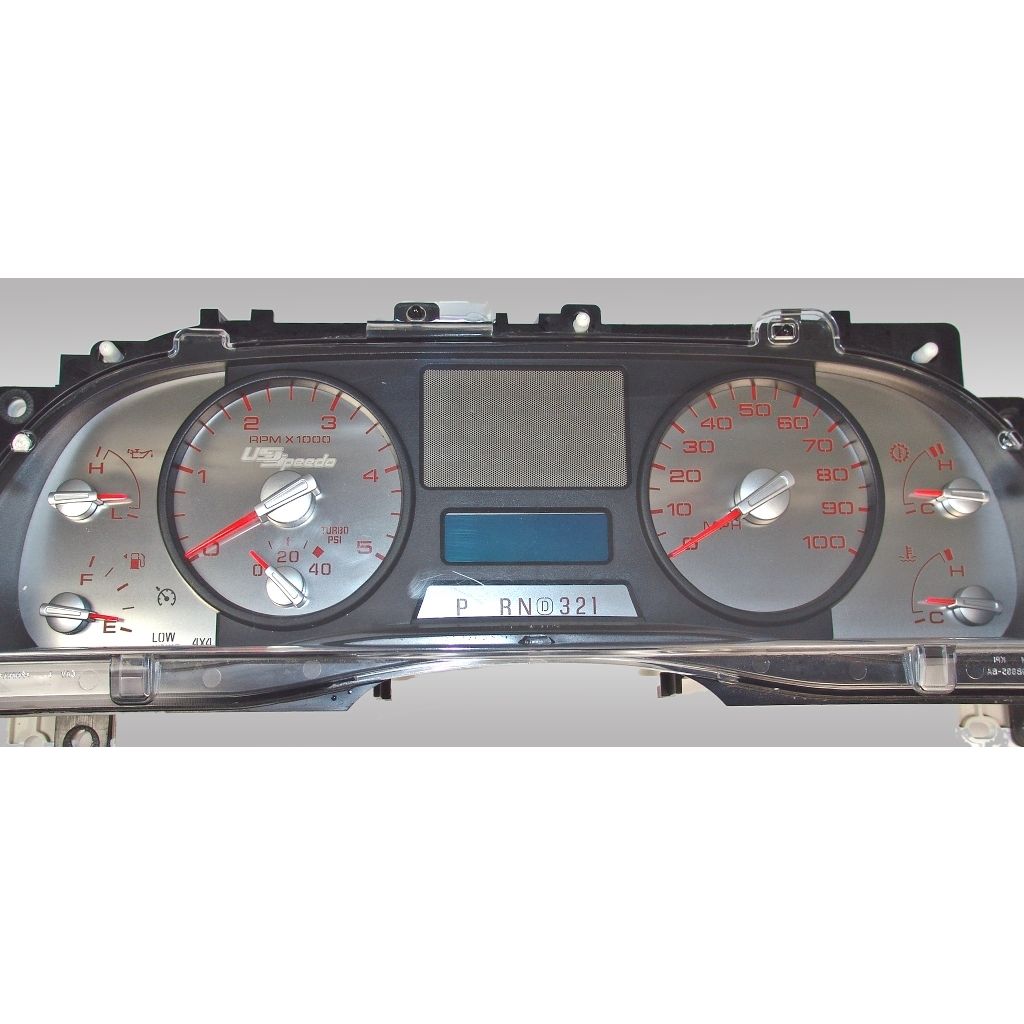US Speedo Stainless Edition Custom Gauge Face for 2005 to 2007 Ford F250/F350 Diesel Lariat/King Ranch Diesel KMH R-Red.