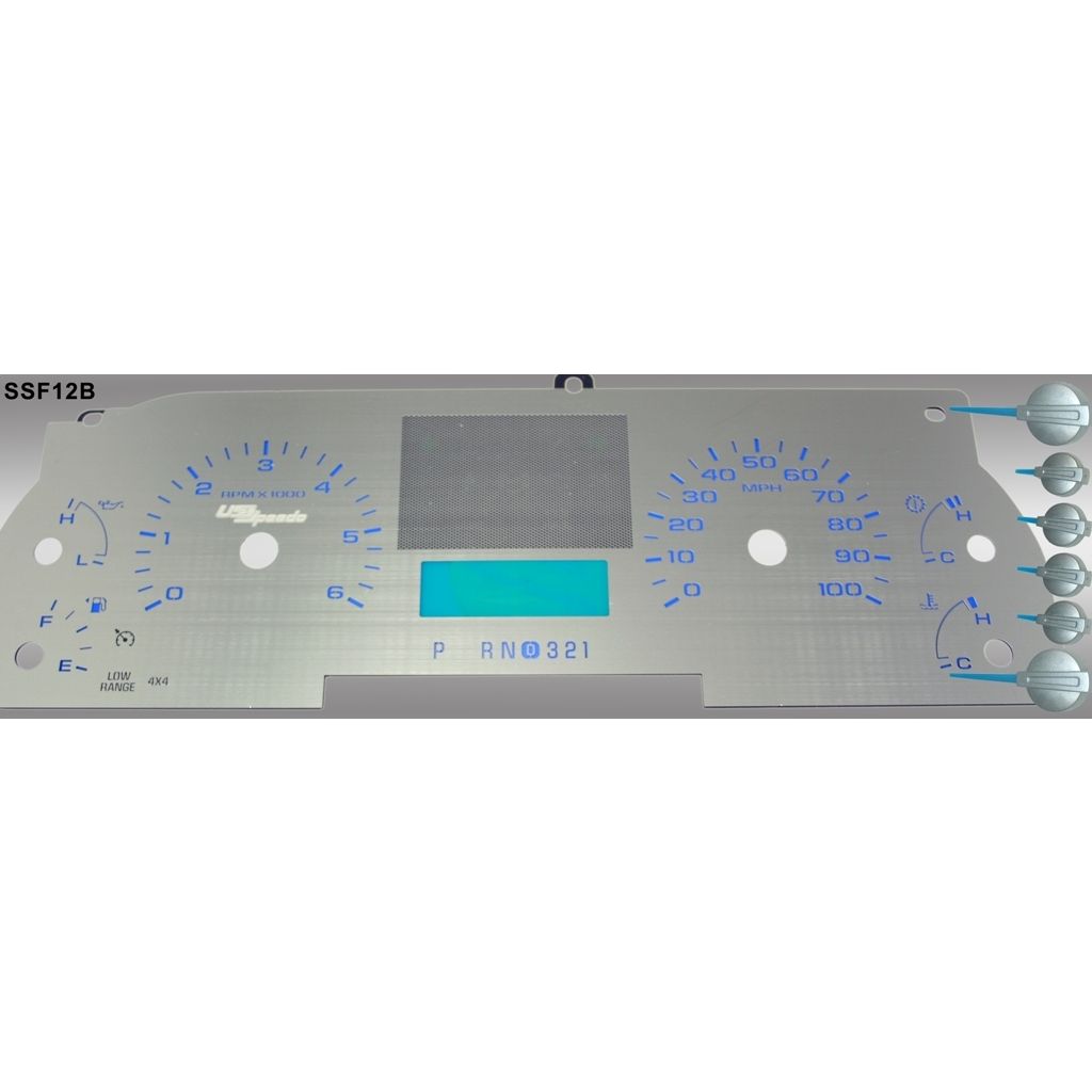 US Speedo Stainless Edition Custom Gauge Face for 2005 to 2007 Ford F250/F350 Gas Lariat/King Ranch Gas MPH B-Blue.