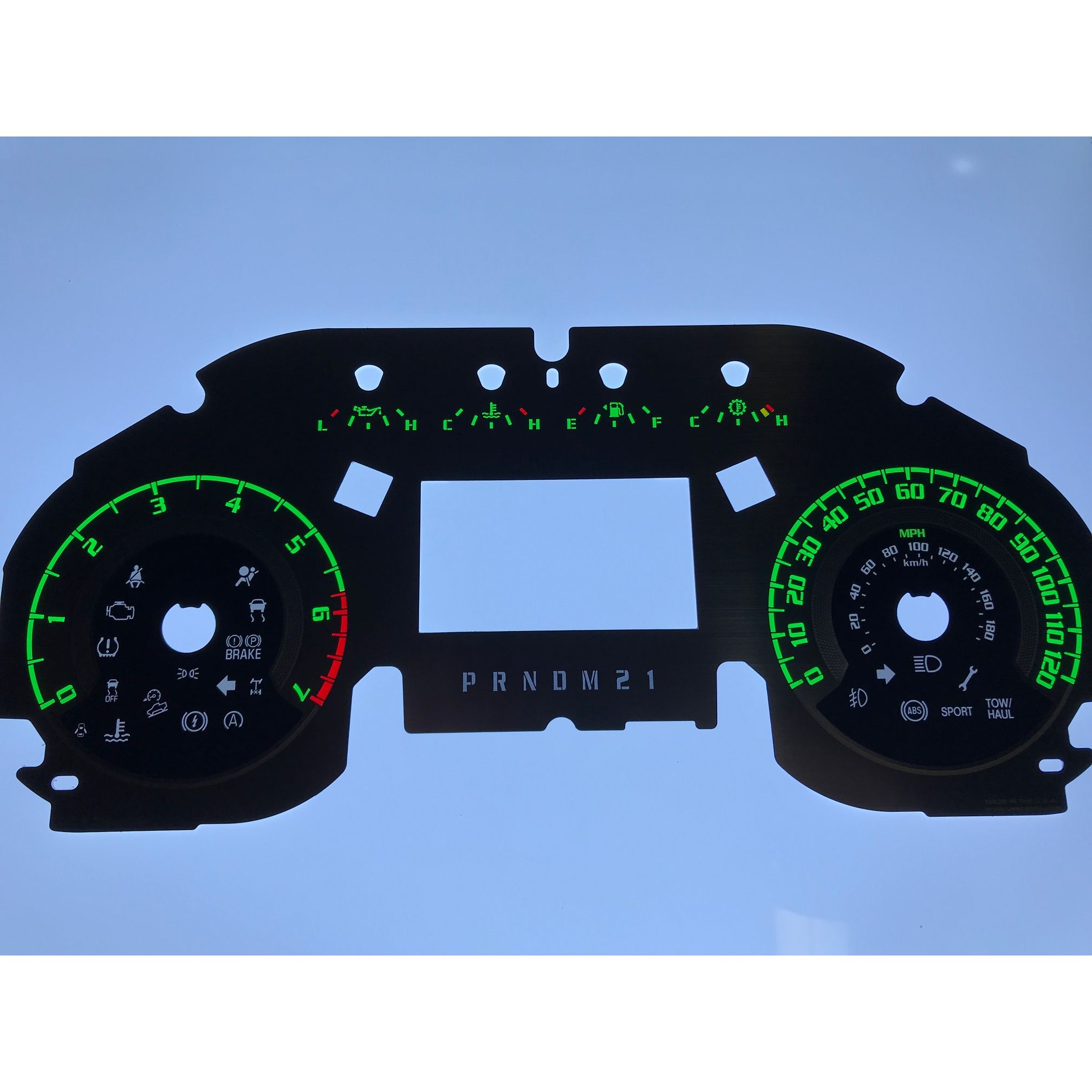 US Speedo Stainless Edition Custom Gauge Face for 2015 to 2019 Ford F150 XLT Gas MPH G-Green.