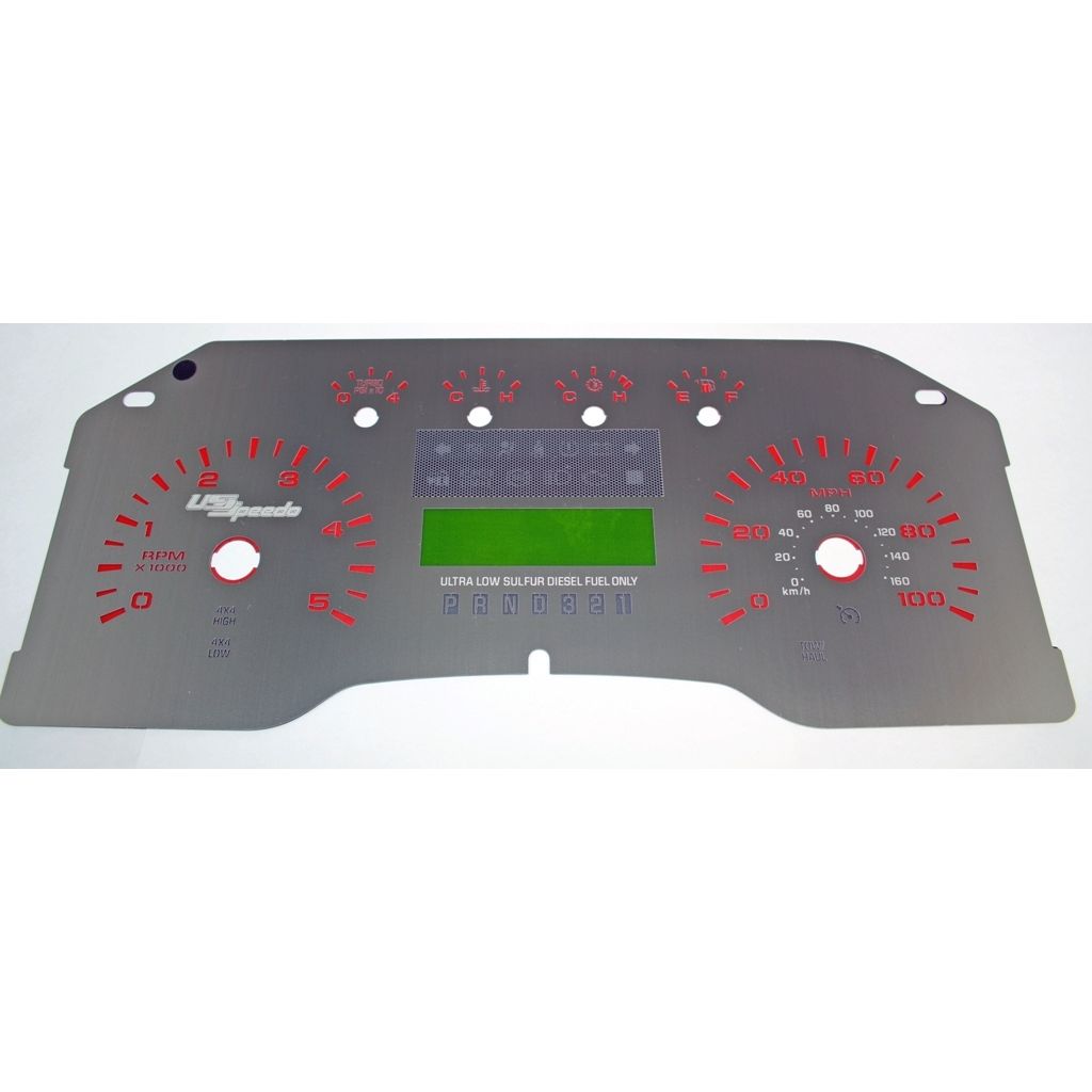 US Speedo Stainless Edition Custom Gauge Face for 2008 to 2010 Ford F250/F350 Diesel Lariat Diesel MPH R-Red.