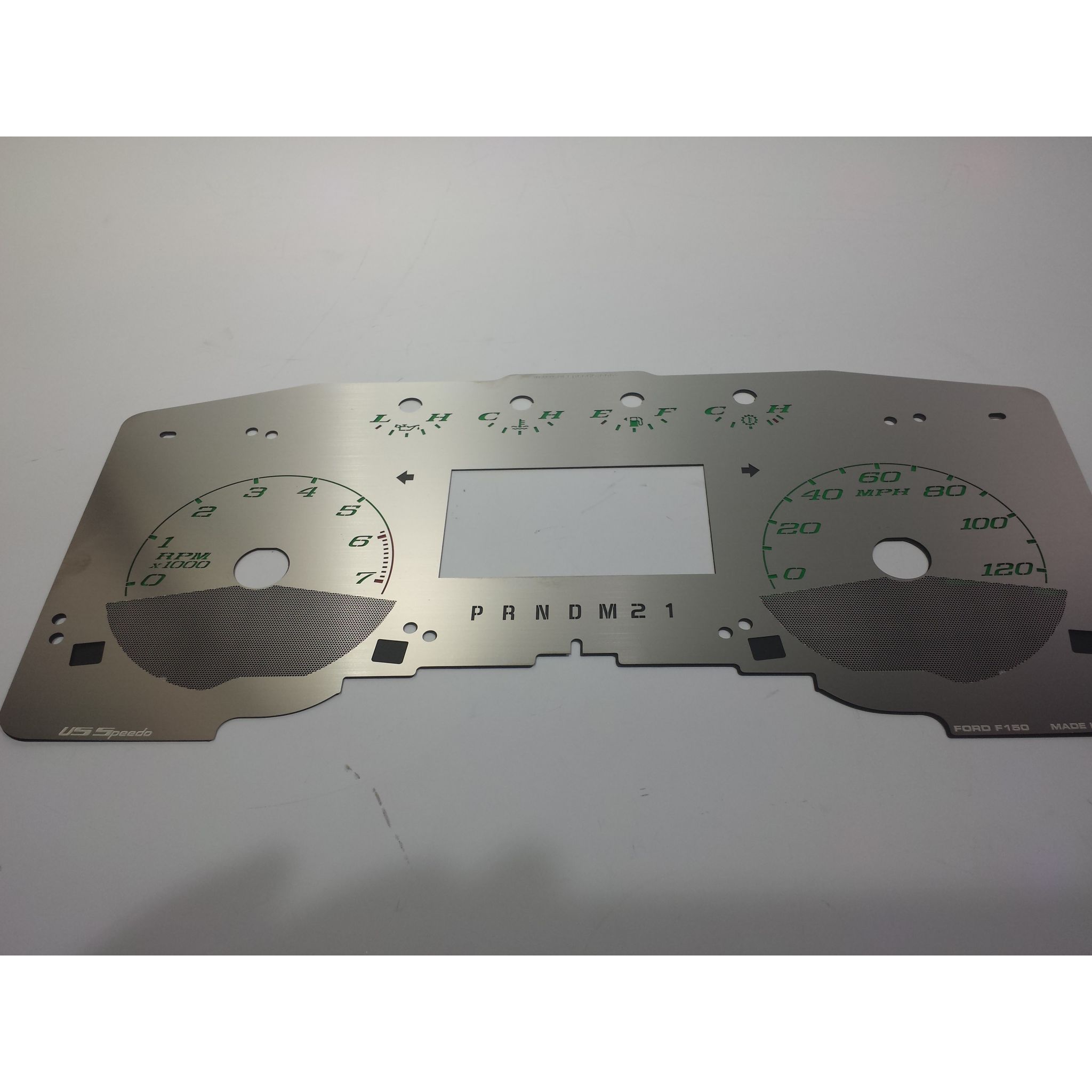 US Speedo Stainless Edition Custom Gauge Face for 2011 to 2014 Ford F150 Lariat/King Ranch Gas MPH G-Green.