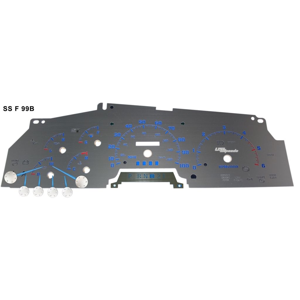 US Speedo Stainless Edition Custom Gauge Face for 1999 to 2001 Ford F250/F350 Gas Gas MPH B-Blue.