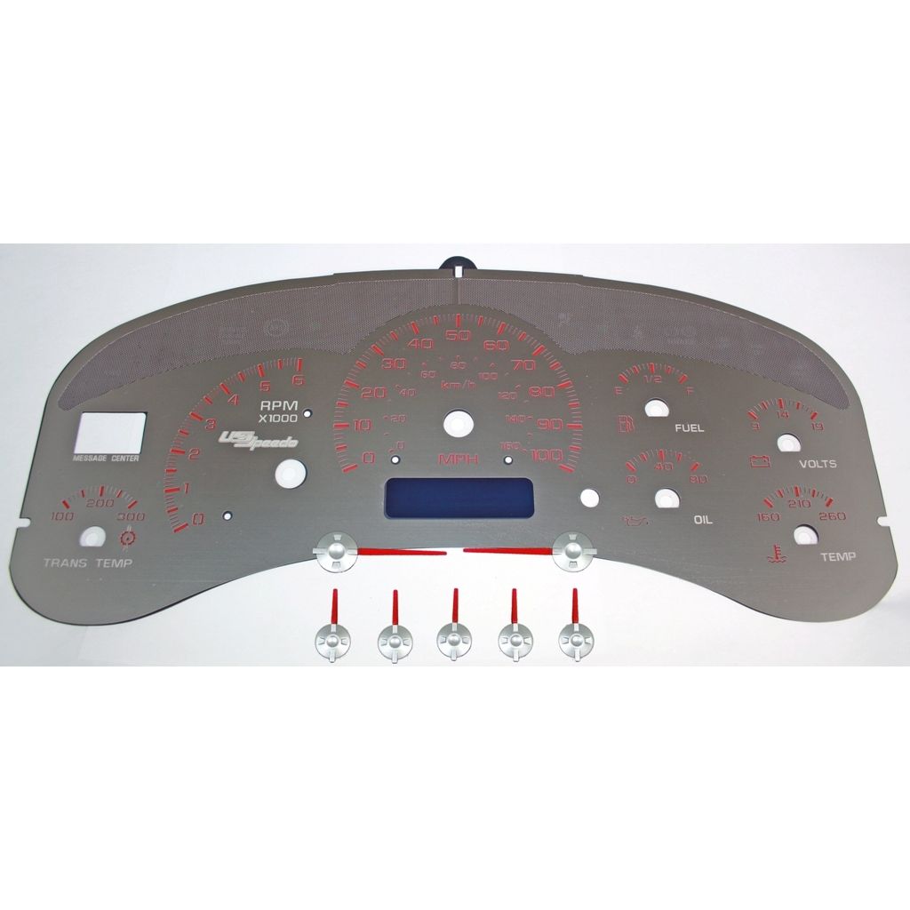 US Speedo Stainless Edition Custom Gauge Face for 1999 to 2002 Chevrolet/GMC Truck & SUV Gas MPH R-Red With Trans Temp.