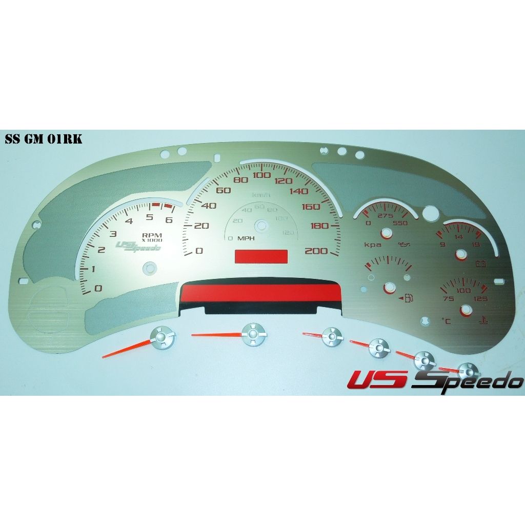 US Speedo Stainless Edition Custom Gauge Face for 2003 to 2005 Chevrolet/GMC Truck & SUV Gas KMH R-Red.