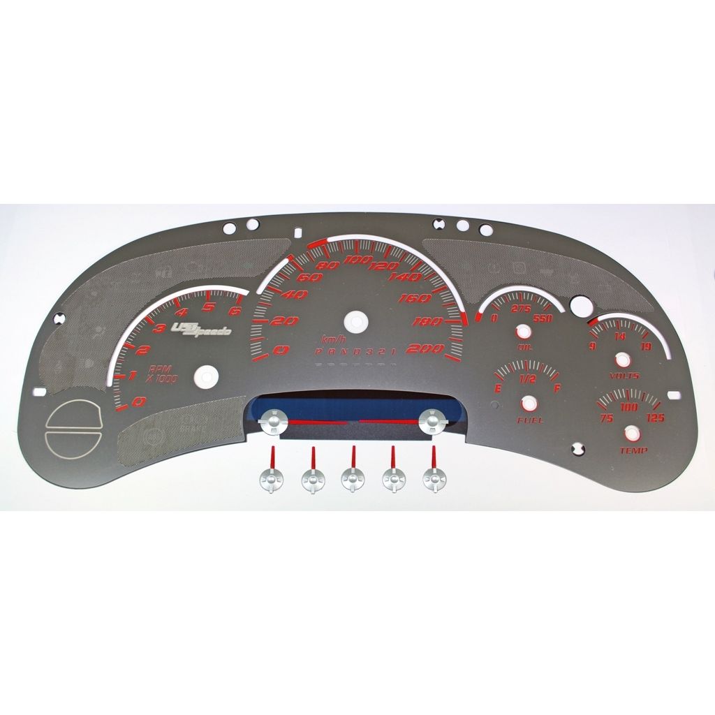 US Speedo Stainless Edition Custom Gauge Face for 2006 to 2007 Chevrolet/GMC Truck & SUV Gas KMH R-Red.