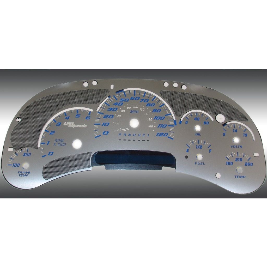 US Speedo Stainless Edition Custom Gauge Face for 2006 to 2007 Chevrolet/GMC Truck & SUV Gas MPH B-Blue With Trans Temp.