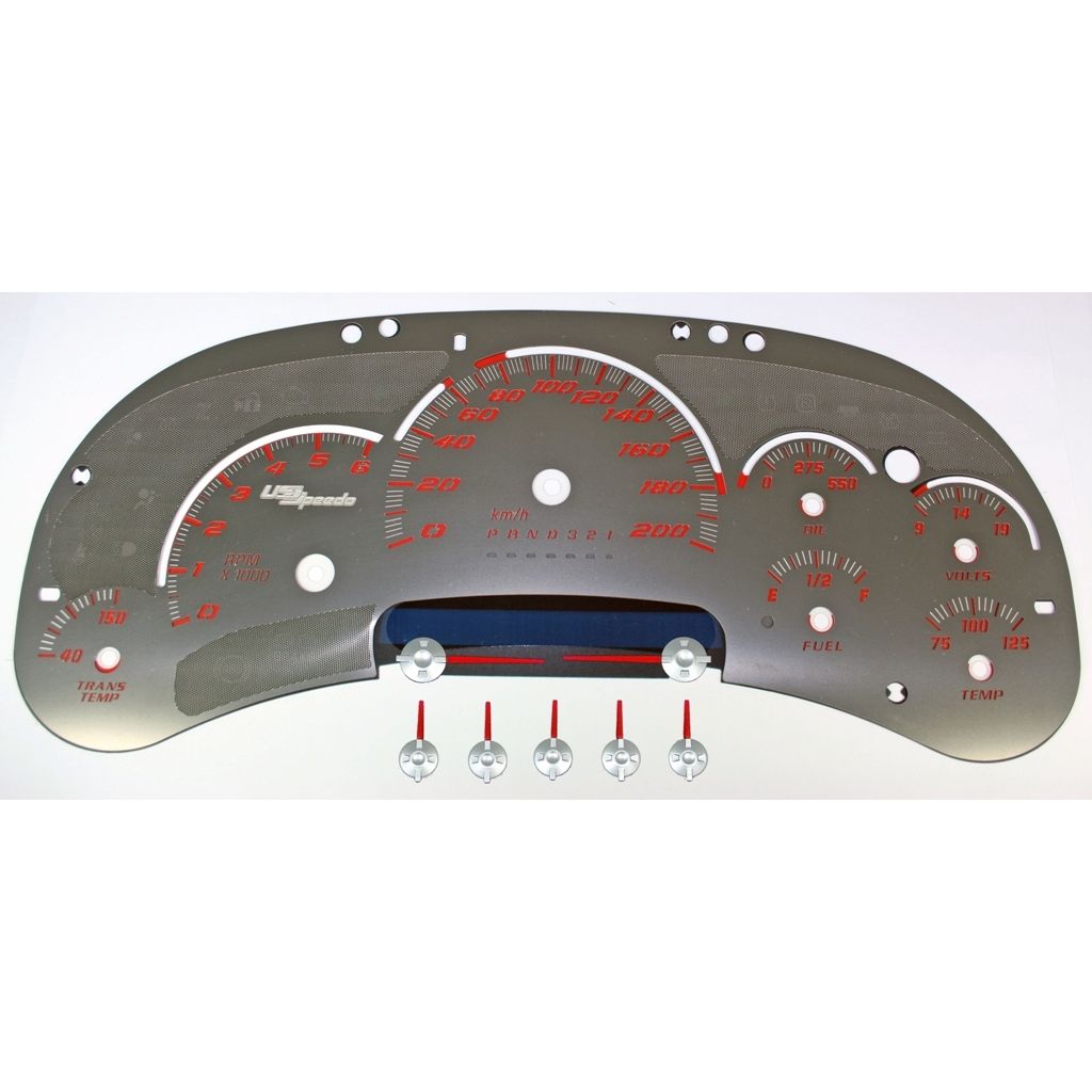 US Speedo Stainless Edition Custom Gauge Face for 2006 to 2007 Chevrolet/GMC Truck & SUV Gas KMH R-Red.