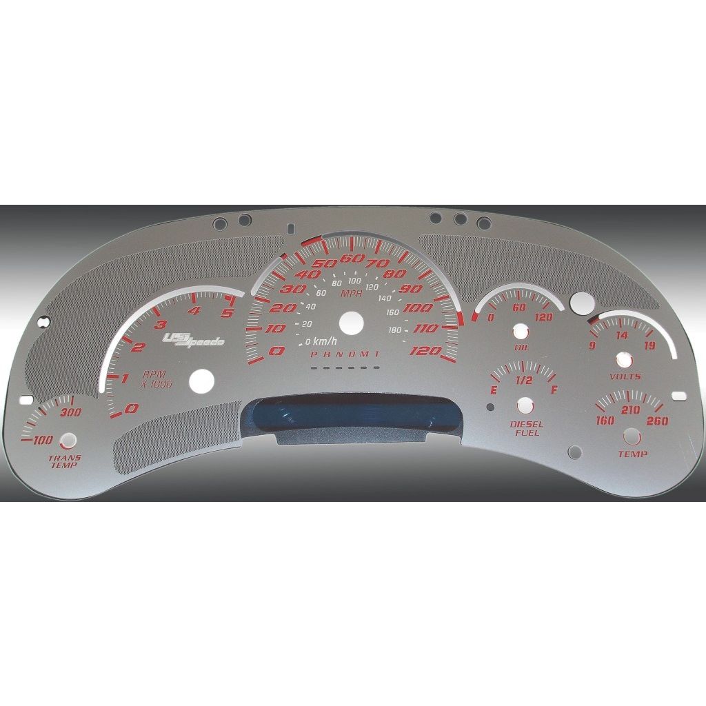 US Speedo Stainless Edition Custom Gauge Face for 2006 to 2007 Chevrolet/GMC Truck & SUV Diesel MPH R-Red.
