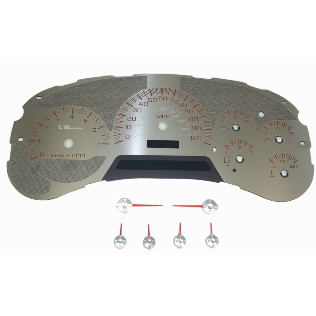US Speedo Stainless Edition Custom Gauge Face for 2002 to 2005 Chevrolet/GMC Trailblazer/Envoy Gas MPH R-Red.