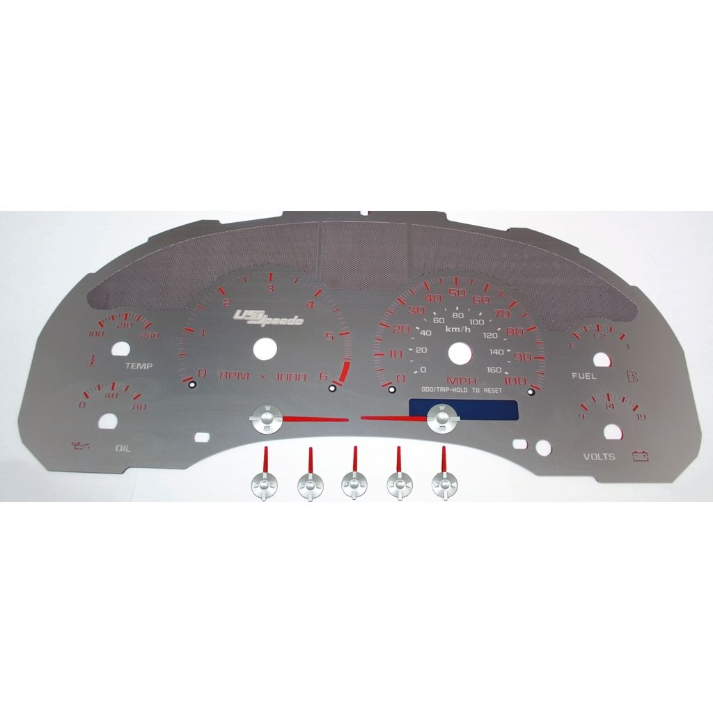 US Speedo Stainless Edition Custom Gauge Face for 1998 to 2002 Chevrolet S10/Blazer Gas MPH R-Red.
