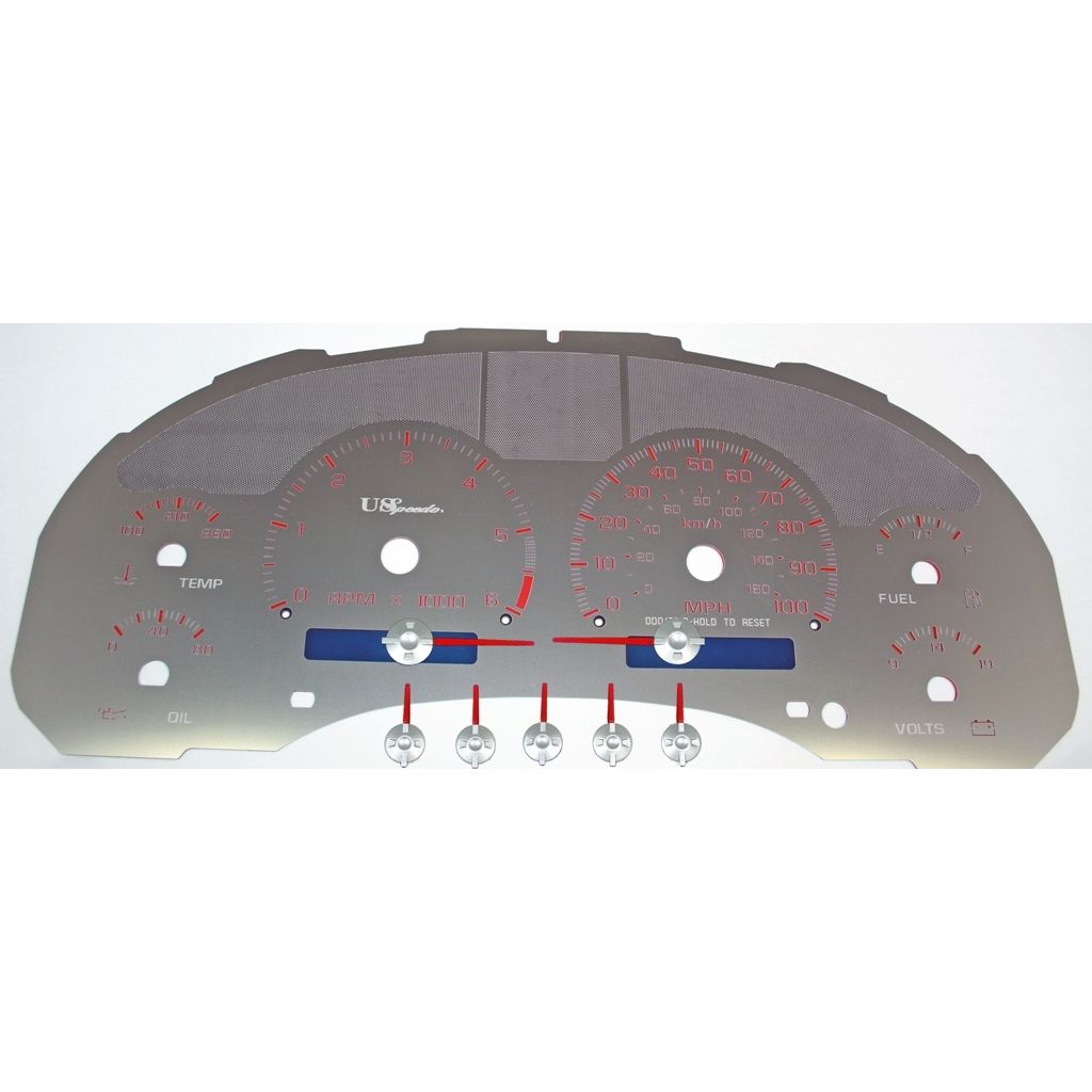 US Speedo Stainless Edition Custom Gauge Face for 1998 to 2002 Chevrolet S10/Blazer Gas MPH R-Red.