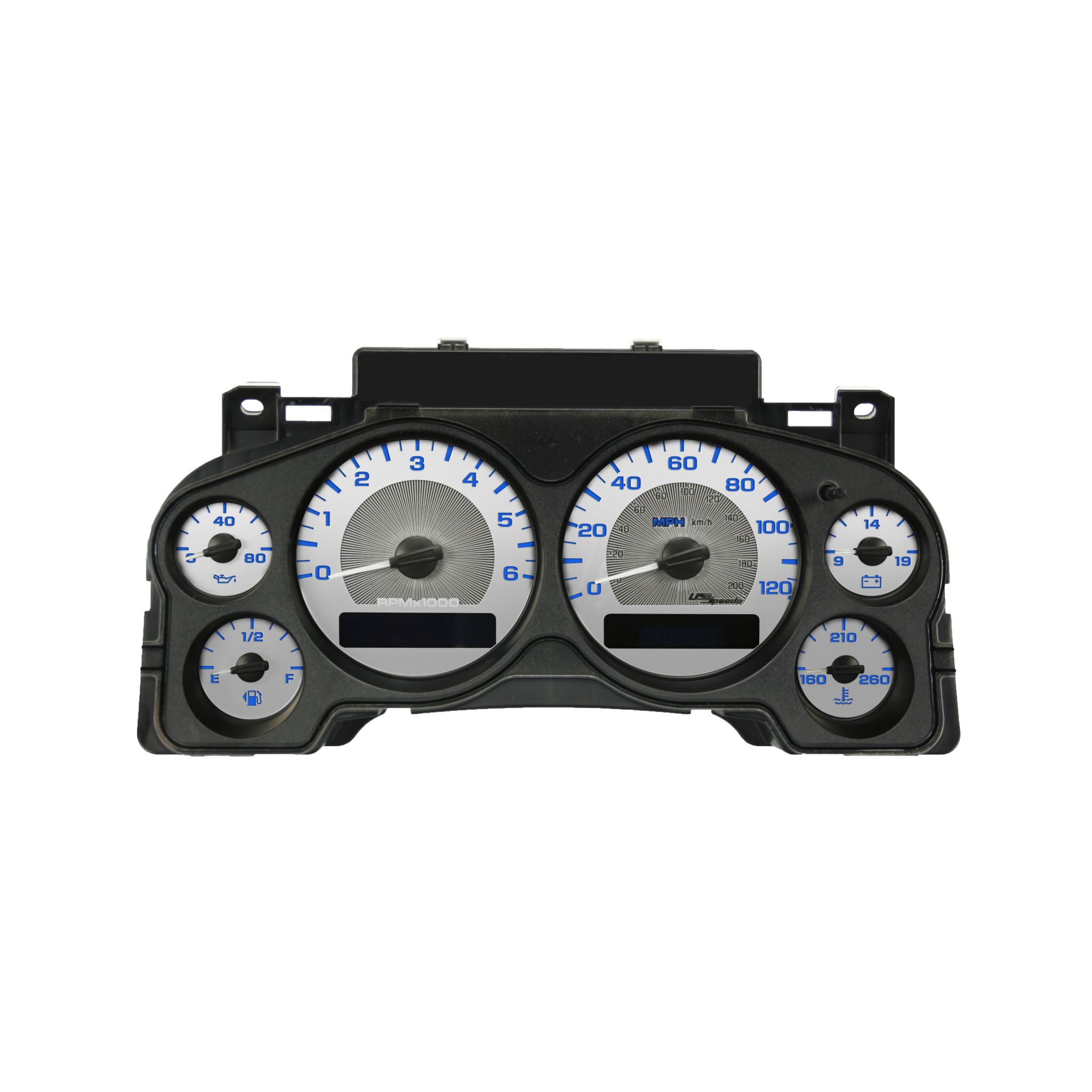 US Speedo Stainless Edition Custom Gauge Face for 2007 to 2013 Chevrolet/GMC Truck & SUV Gas MPH B-Blue.