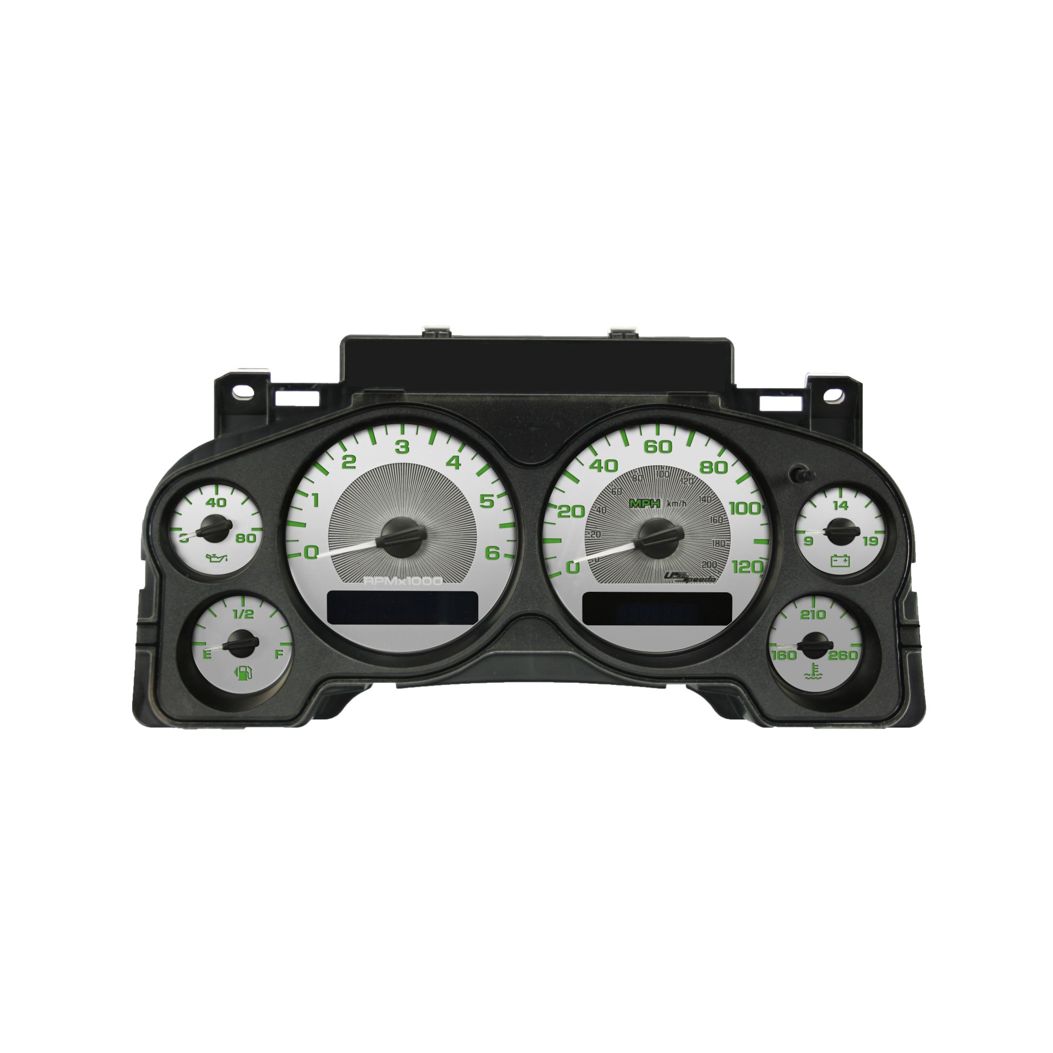 US Speedo Stainless Edition Custom Gauge Face for 2007 to 2013 Chevrolet/GMC Truck & SUV Gas MPH G-Green.