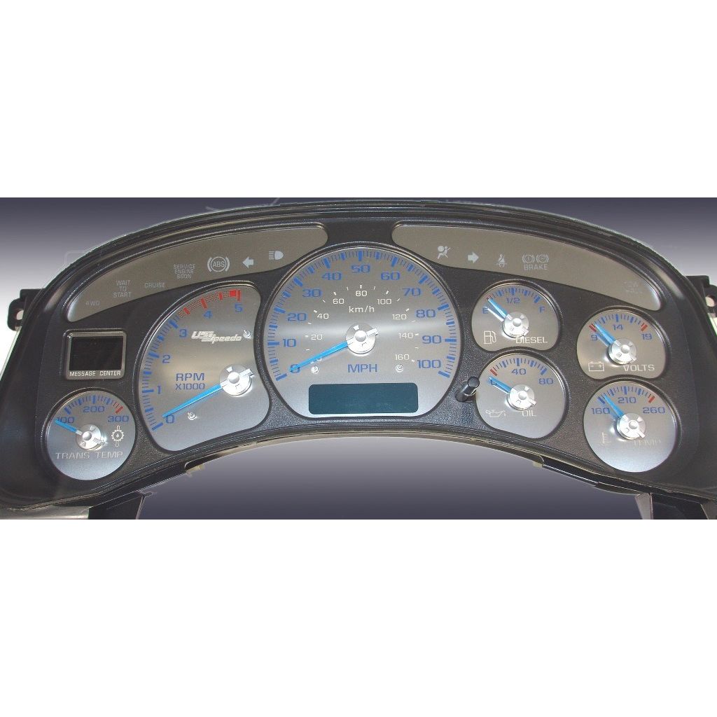 US Speedo Stainless Edition Custom Gauge Face for 1999 to 2002 Chevrolet/GMC Truck & SUV Diesel Diesel MPH B-Blue.