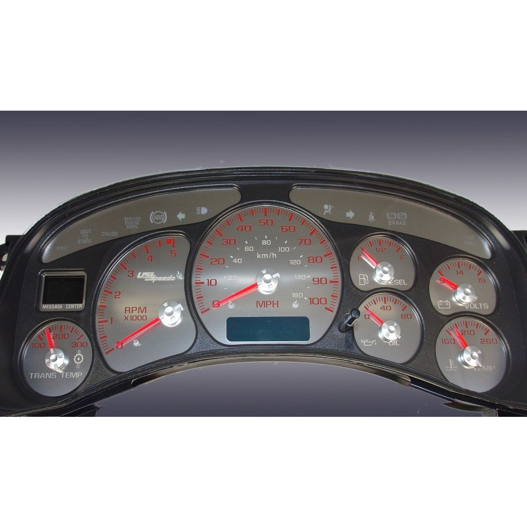 US Speedo Stainless Edition Custom Gauge Face for 1999 to 2002 Chevrolet/GMC Truck & SUV Diesel Diesel MPH R-Red.