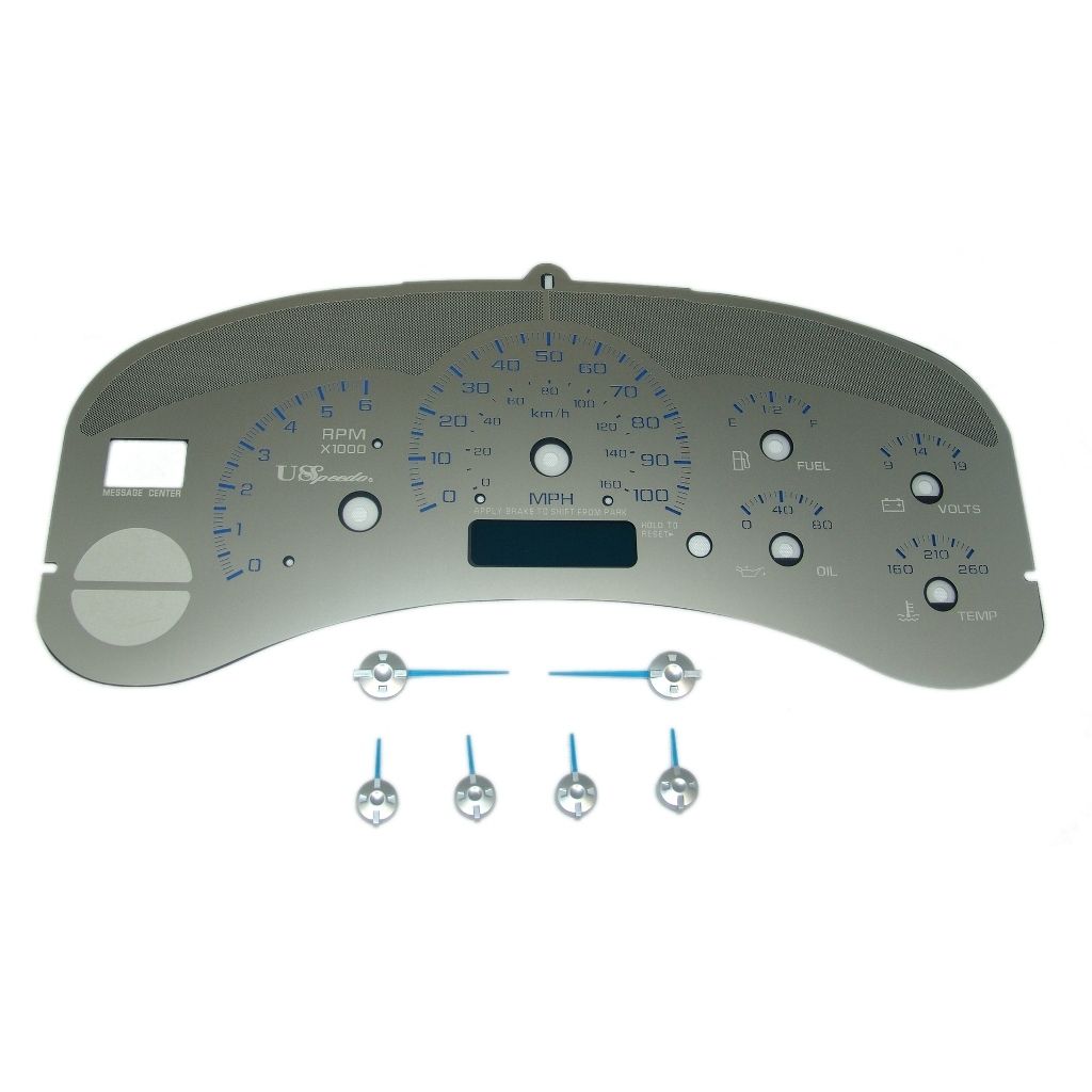 US Speedo Stainless Edition Custom Gauge Face for 1999 to 2002 Chevrolet/GMC Truck & SUV Gas MPH B-Blue.