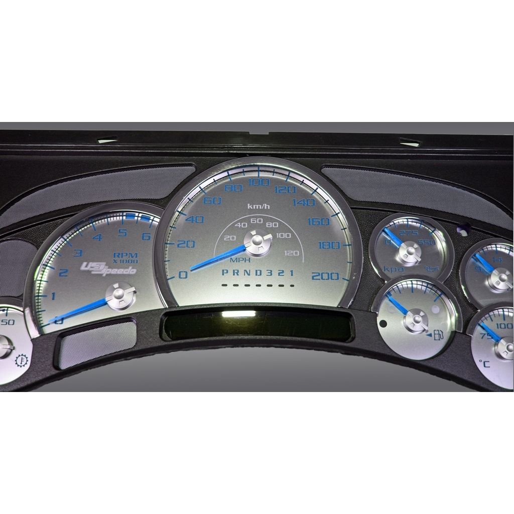 US Speedo Stainless Edition Custom Gauge Face for 2006 to 2007 Hummer H2 Gas KMH B-Blue.